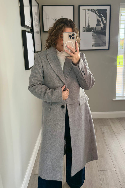 Grey Longline Twill Coat
