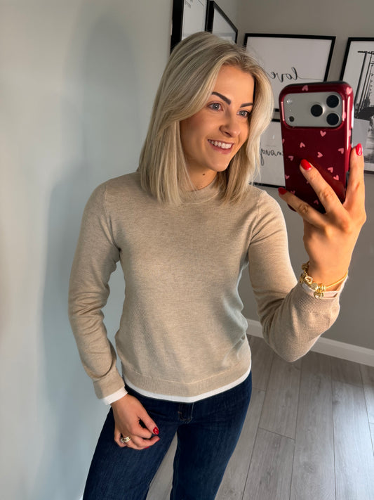 Kaffe KAharriet Chalk/Pink Knit Pullover