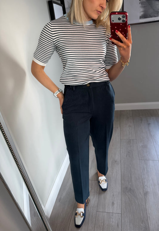 Kaffe KAheather Midnight Marine Elasticated Cropped Trousers