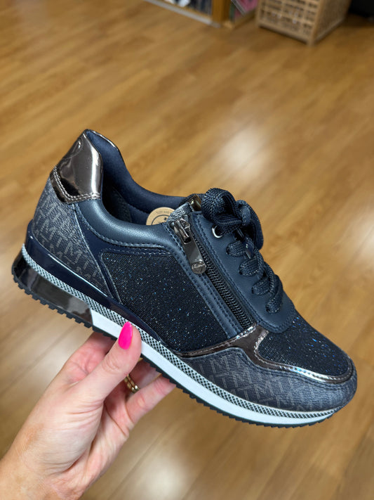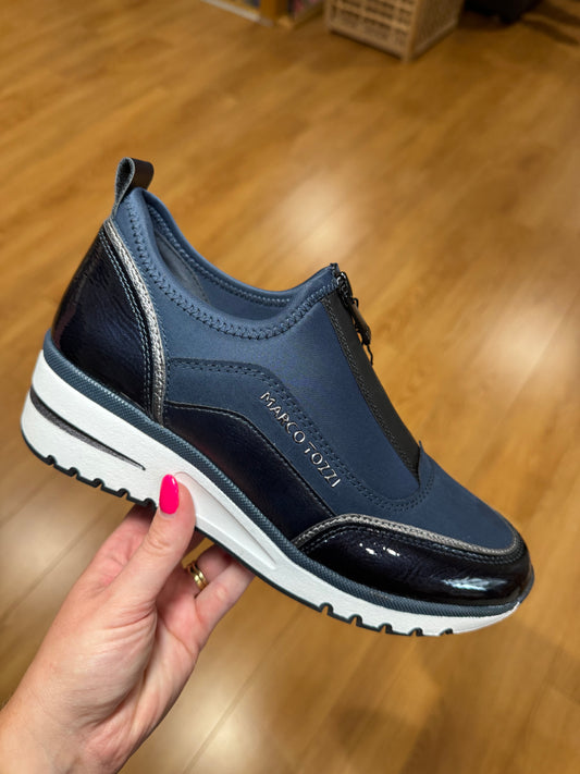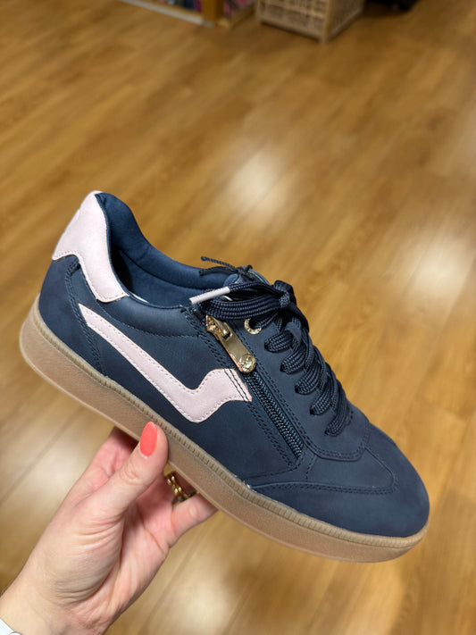 Marco Tozzi Navy Sparkle/Logo Zip Trainer