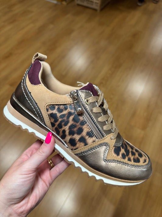 Marco Tozzi Leopard/Burgundy Zip Trainer