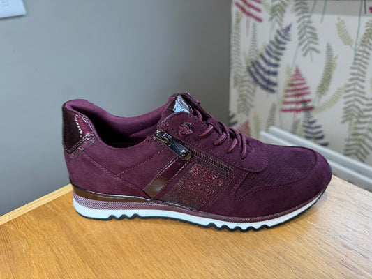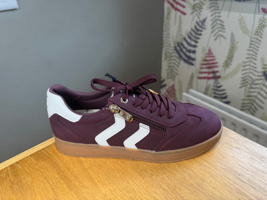Marco Tozzi Burgundy/Cream Zip Trainer