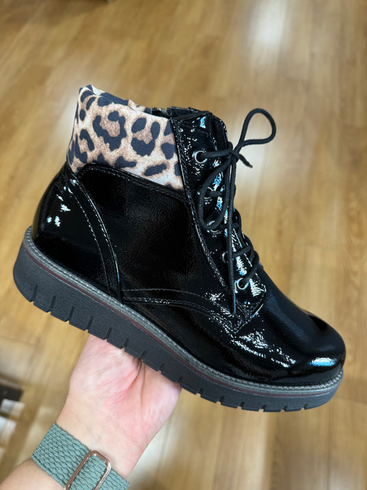 Marco Tozzi Black Patent Lace Up Boot