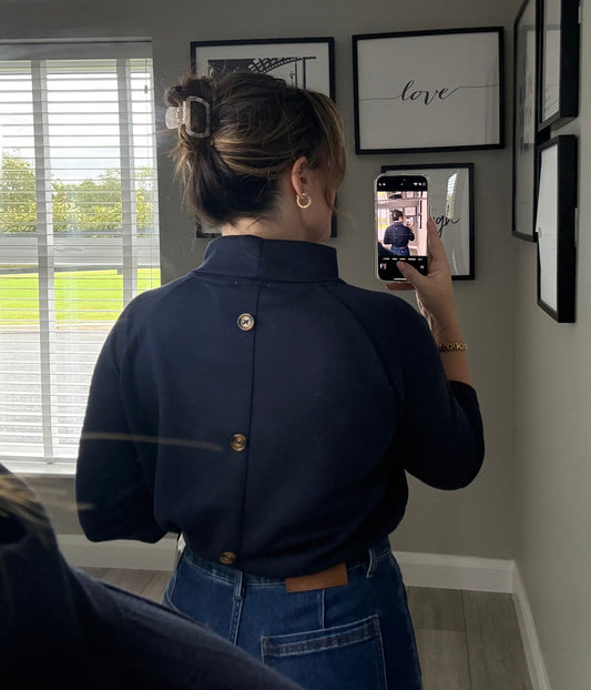 Navy Button Back Top