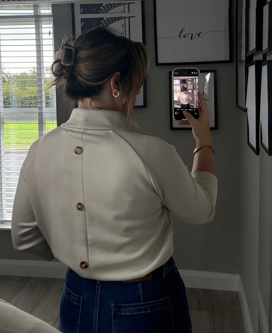 Beige Button Back Top