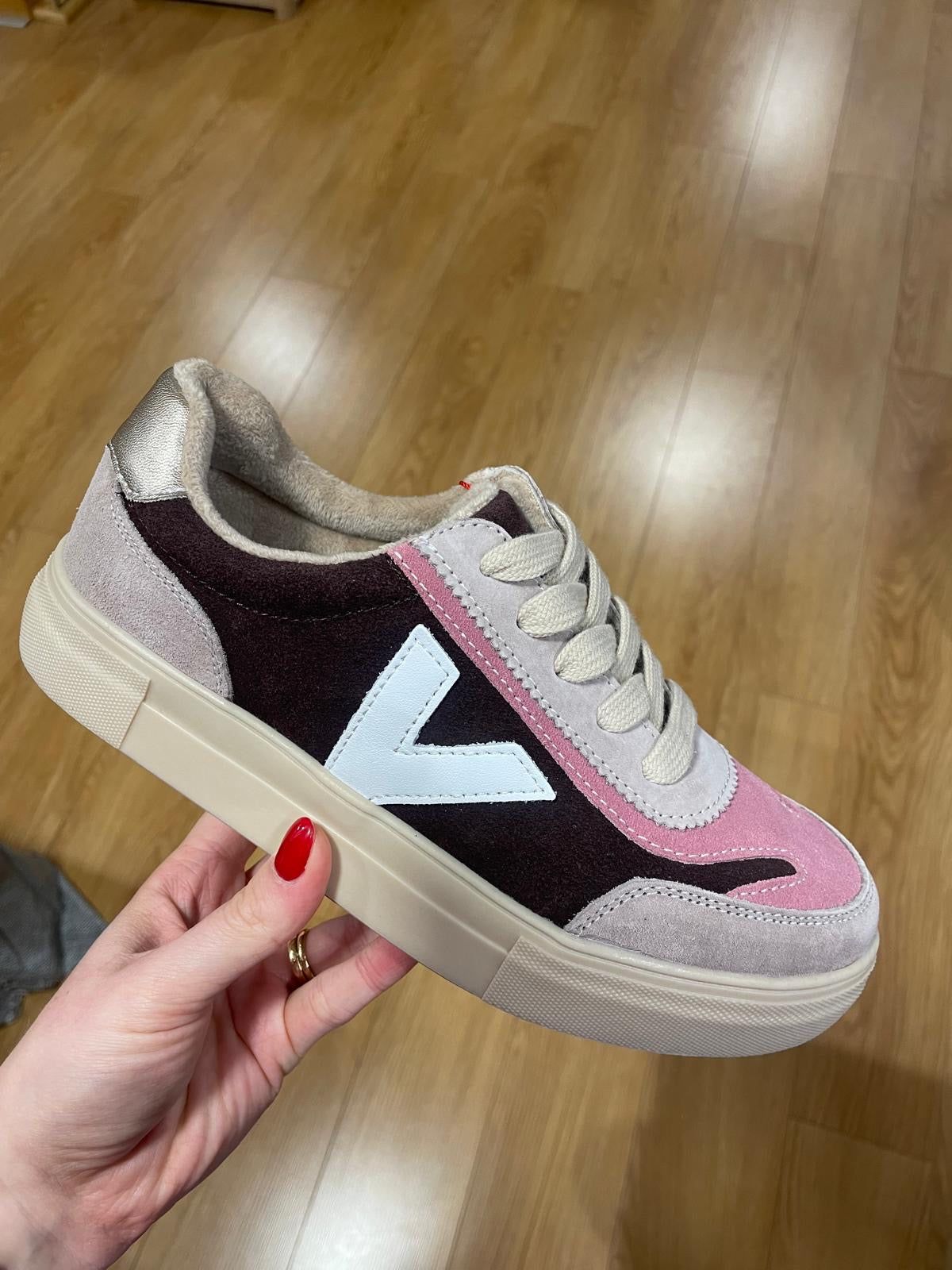 Drilleys Lace Up Trainer with V Design & Contrasting Three Tone Colouring