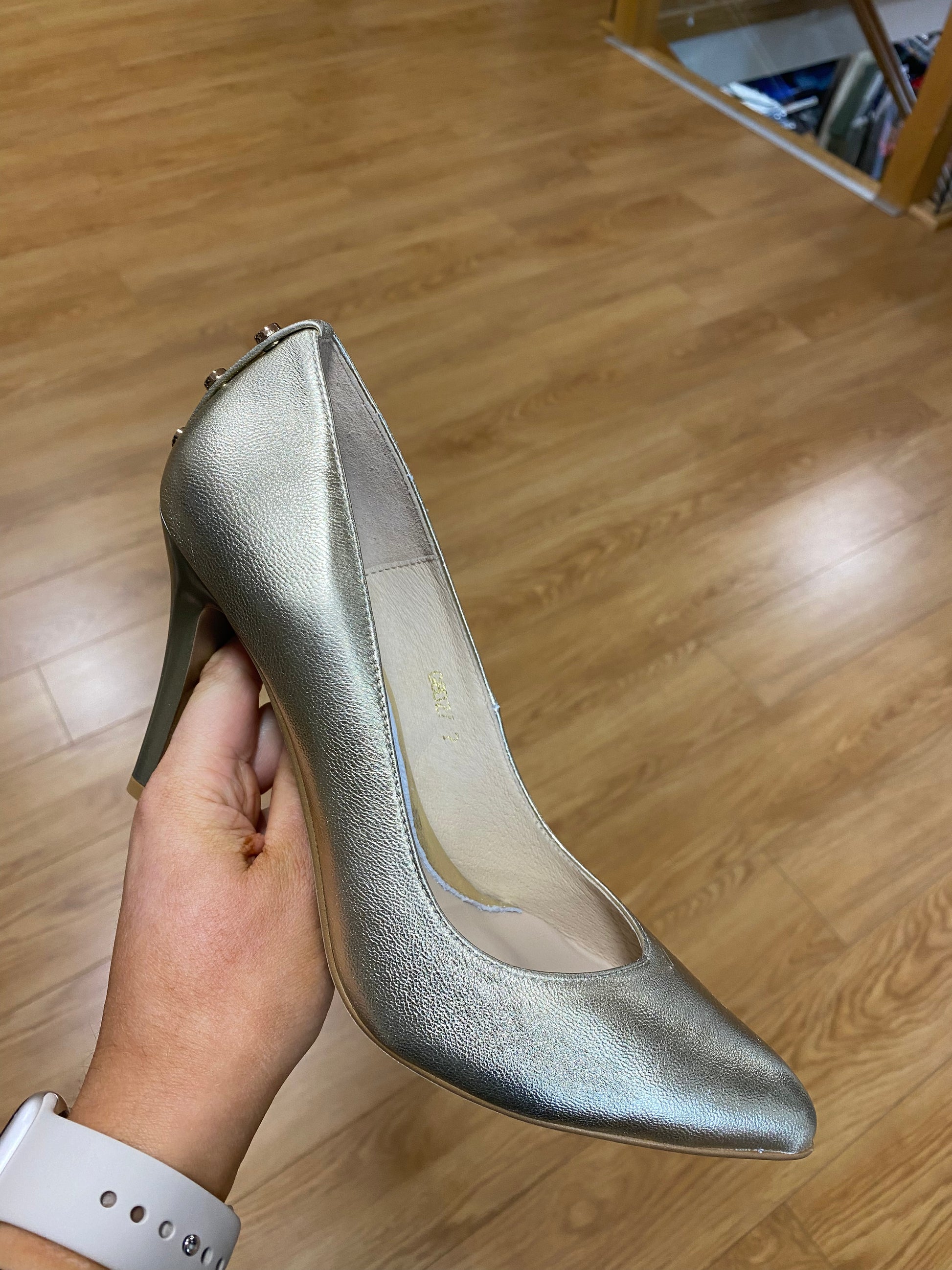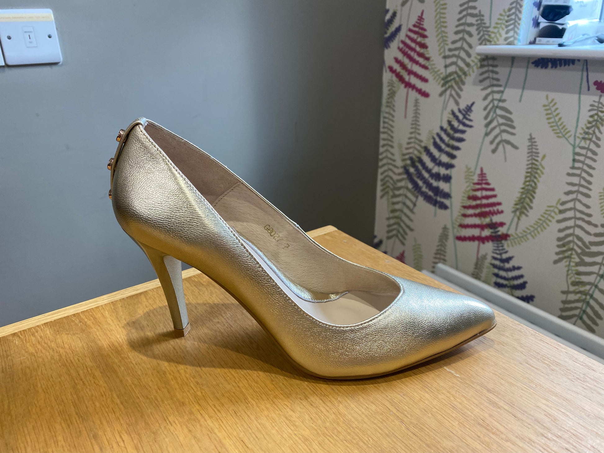 Emis Pointed Court Shoe in Metallic Shimmer with Small Stud Back