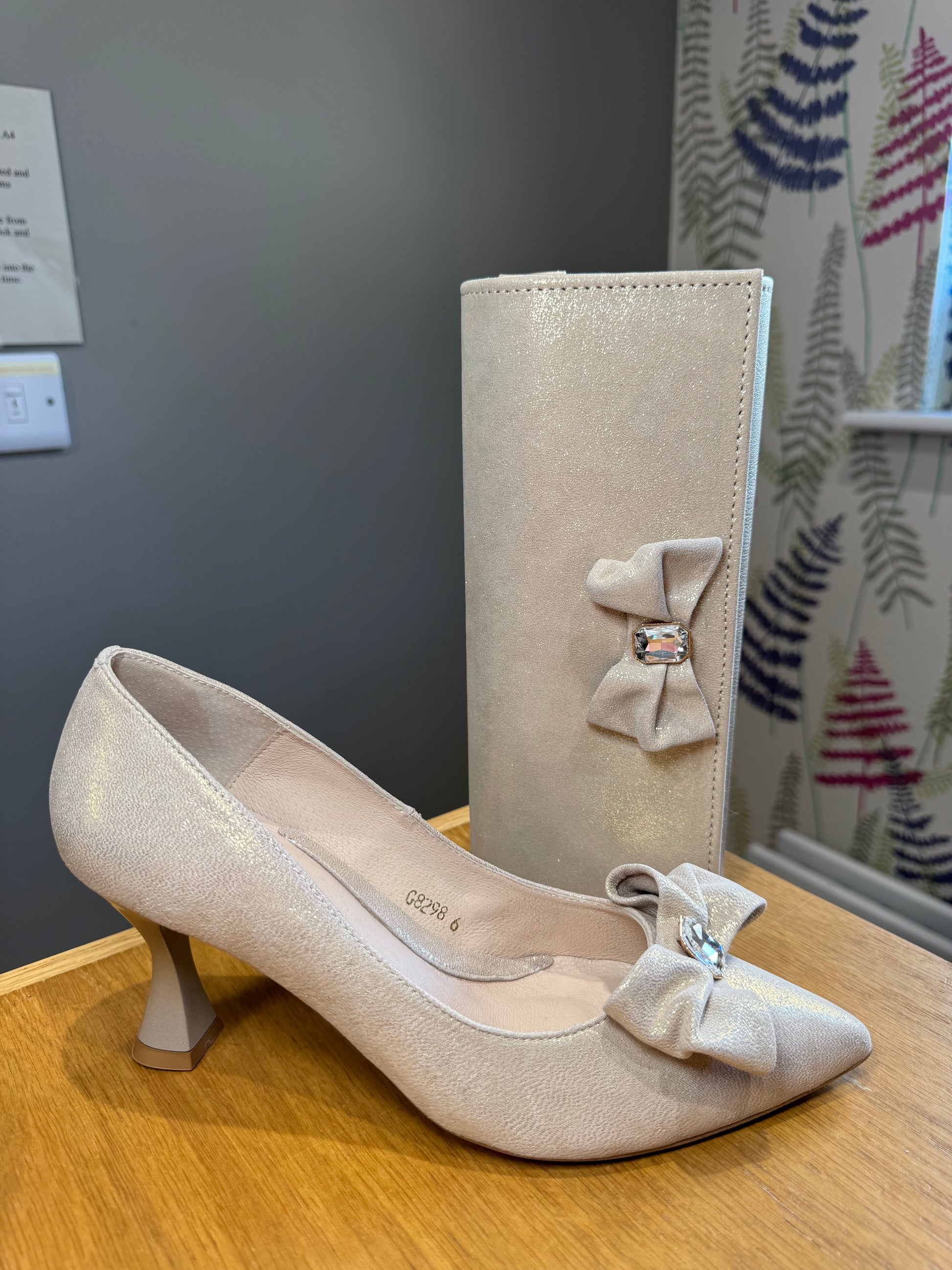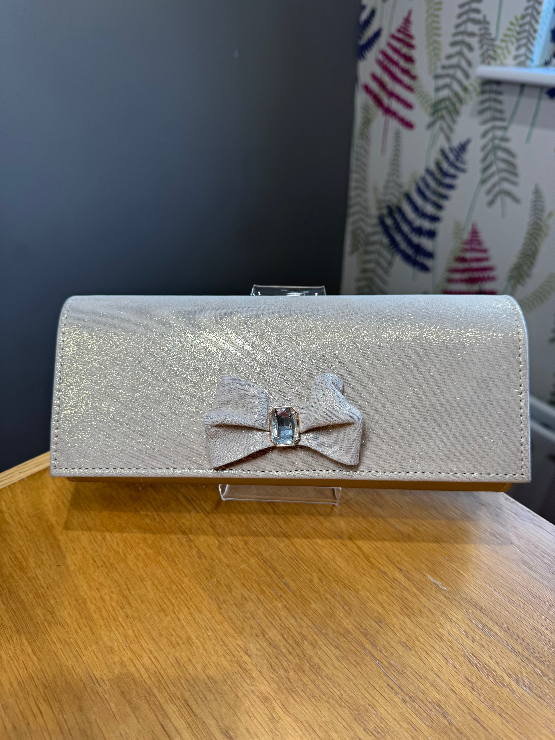 Emis Small Envelope Style Clutch Bag with Shimmer Finish & Diamanté Jewel Detail