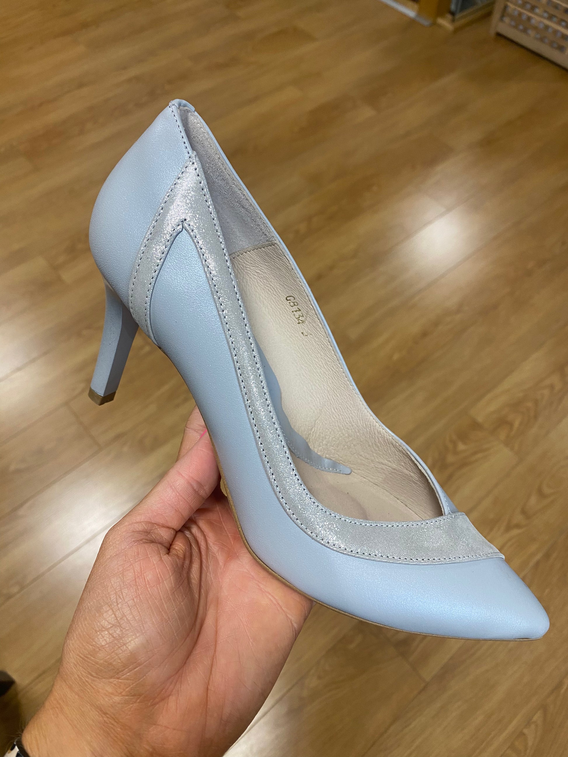 Emis Soft Leather Court Shoe with Metallic Scalloped Edging & 3 inch Heel