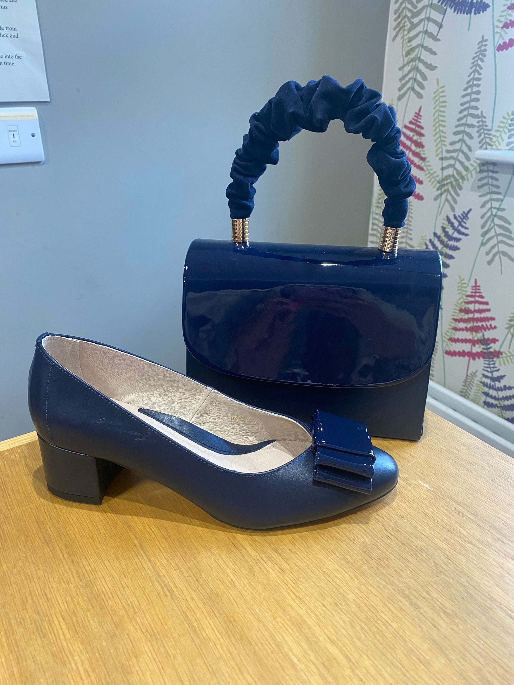 Emis Navy Leather/Patent Bow Court