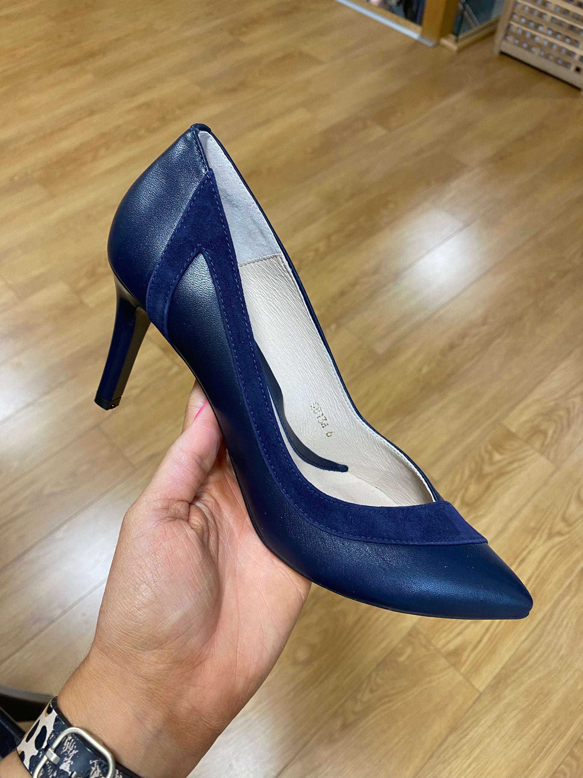 Emis Soft Leather Court Shoe with Suede Scalloped Edging & 3 inch Heel