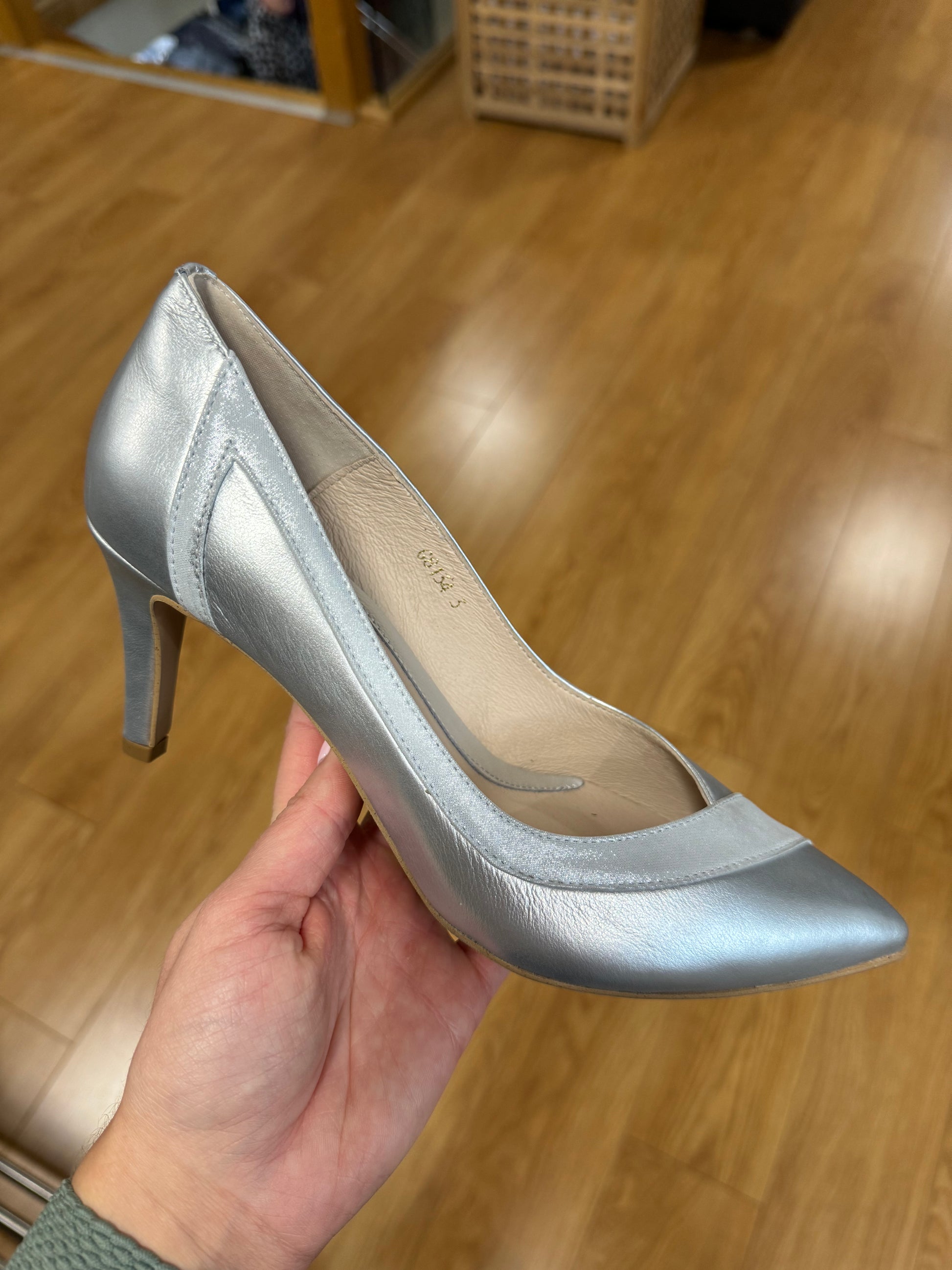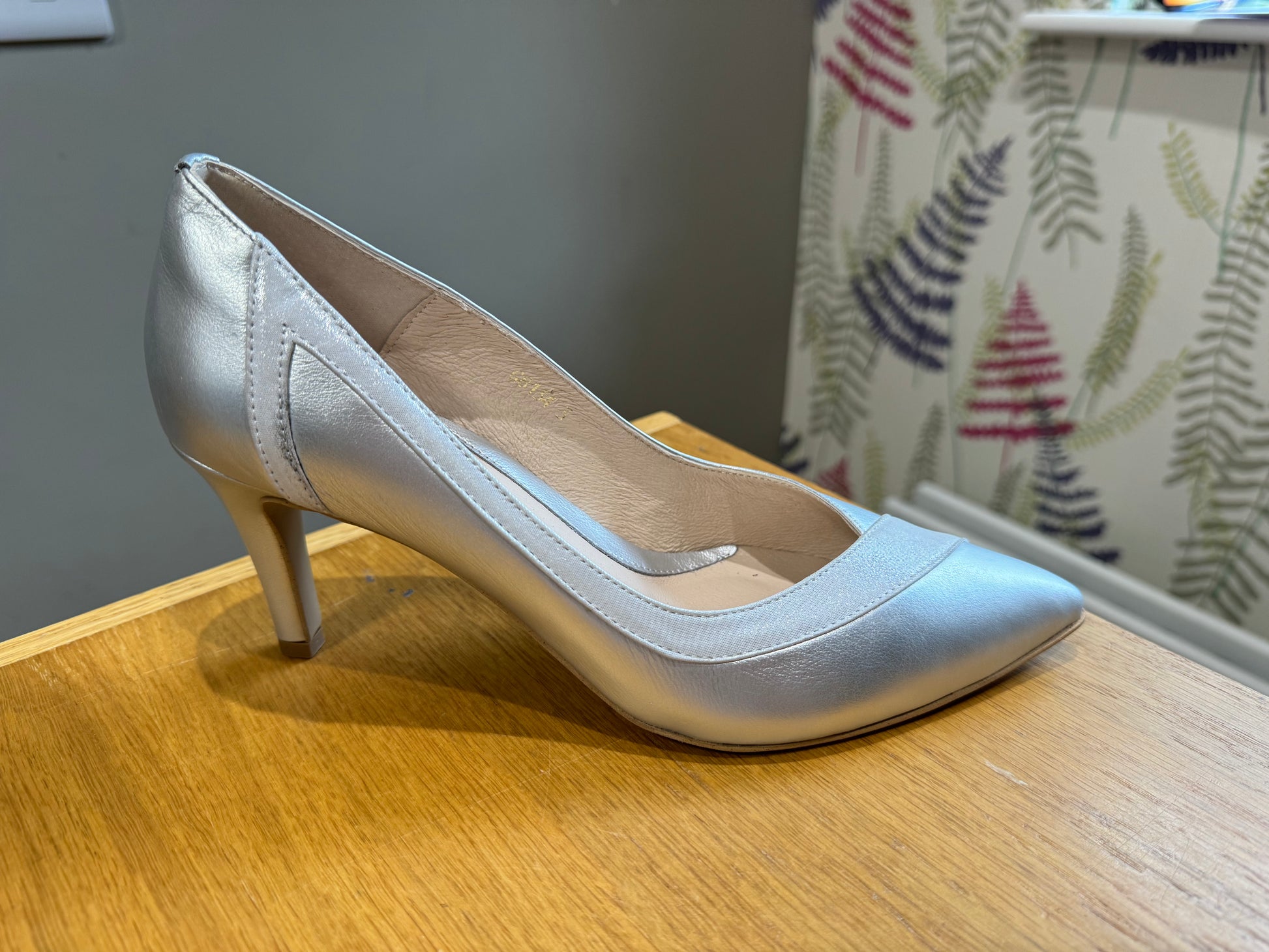 Emis Soft Leather Court Shoe with Metallic Scalloped Edging & 3 inch Heel