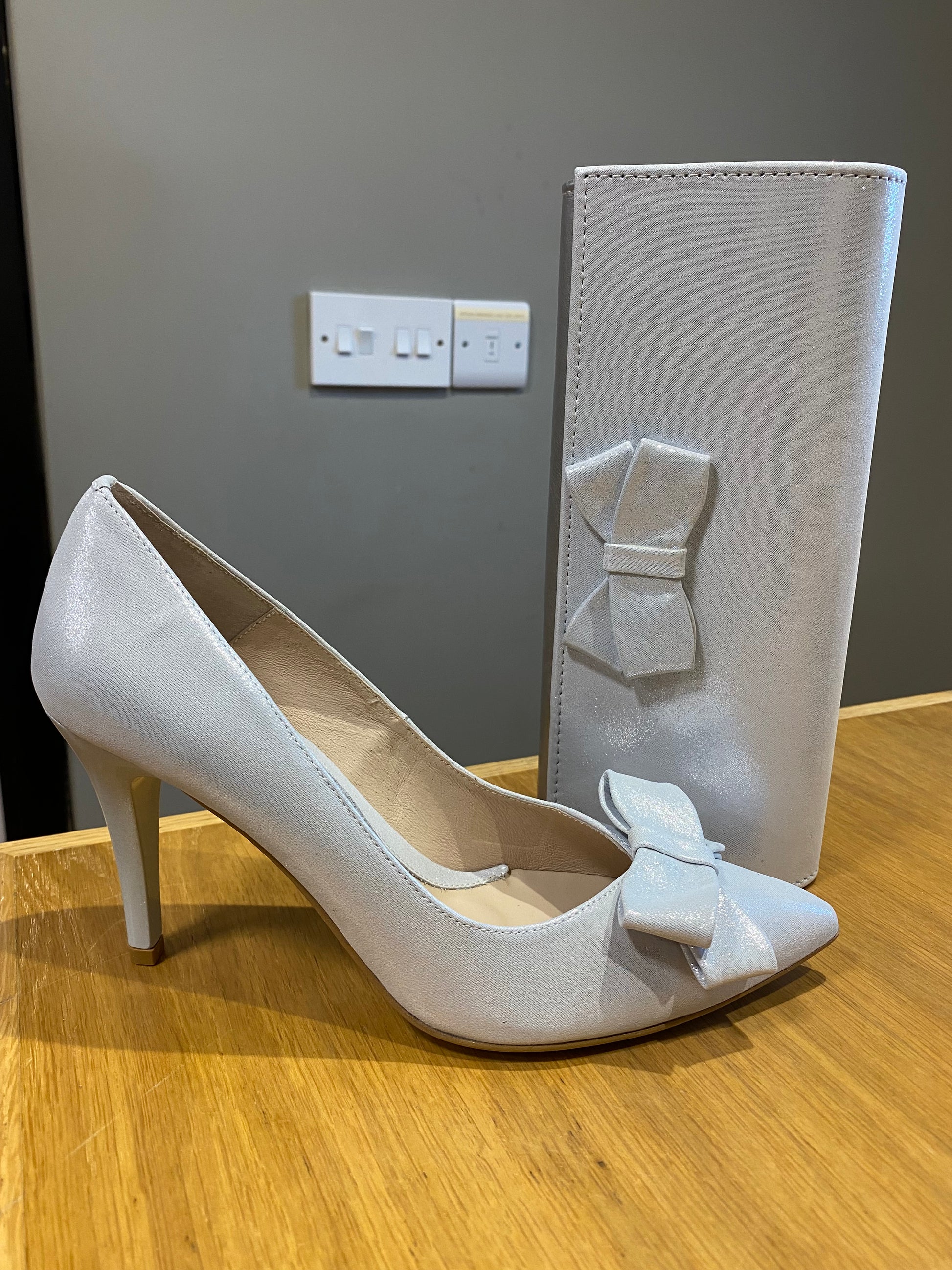 Emis Soft Leather Shoe with Shimmer Metallic Finish & Bow Front