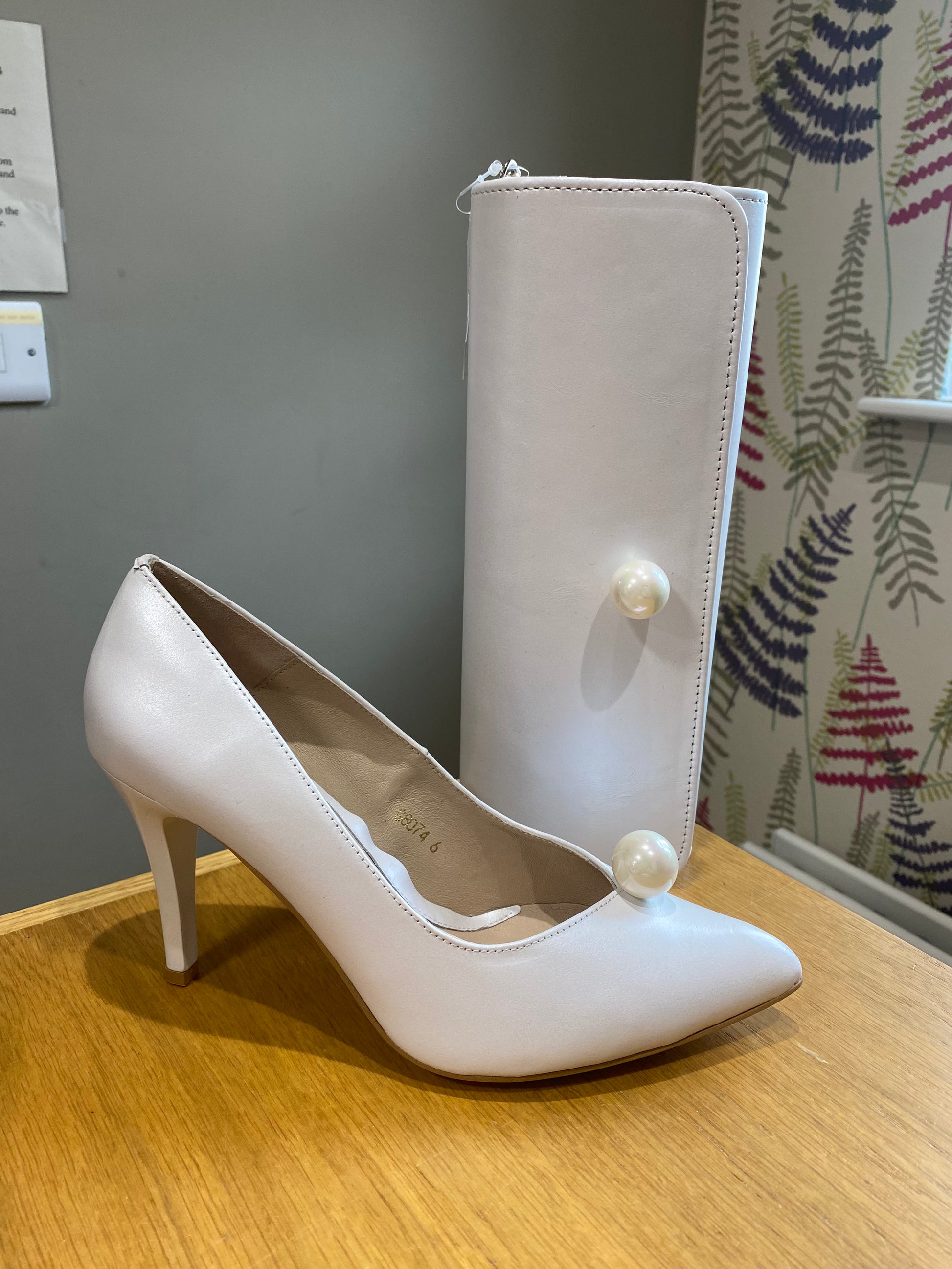Emis Small Envelope Bag in Leather with Plain White Back, Pearlised White Front & Pearl Attachment