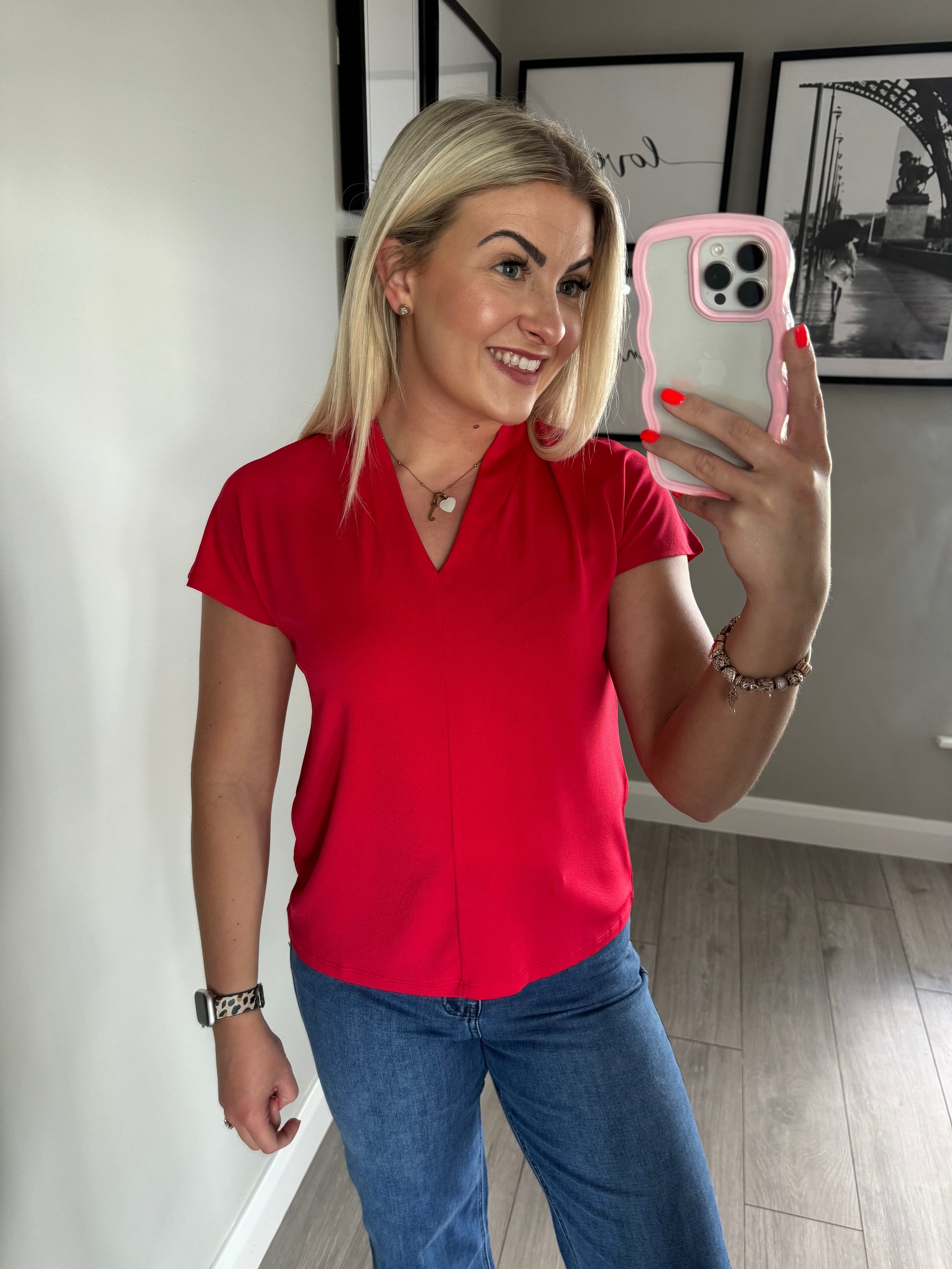 Freequent Red V Blouse