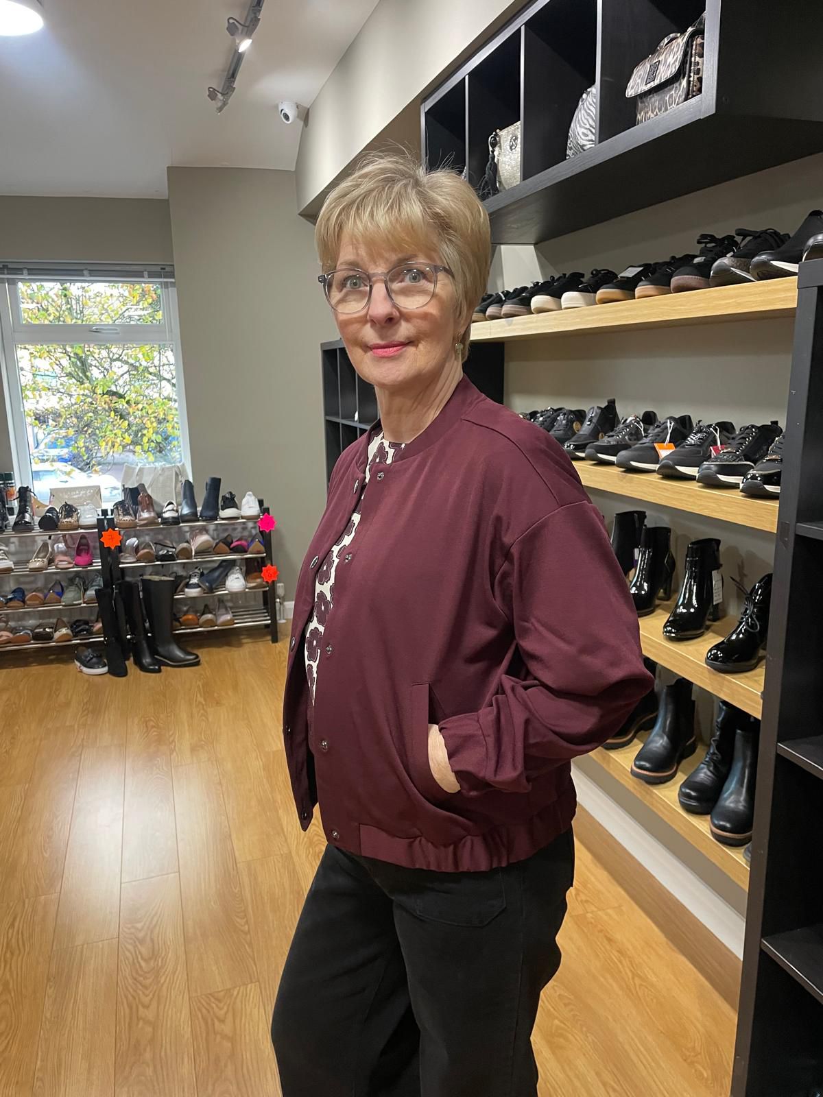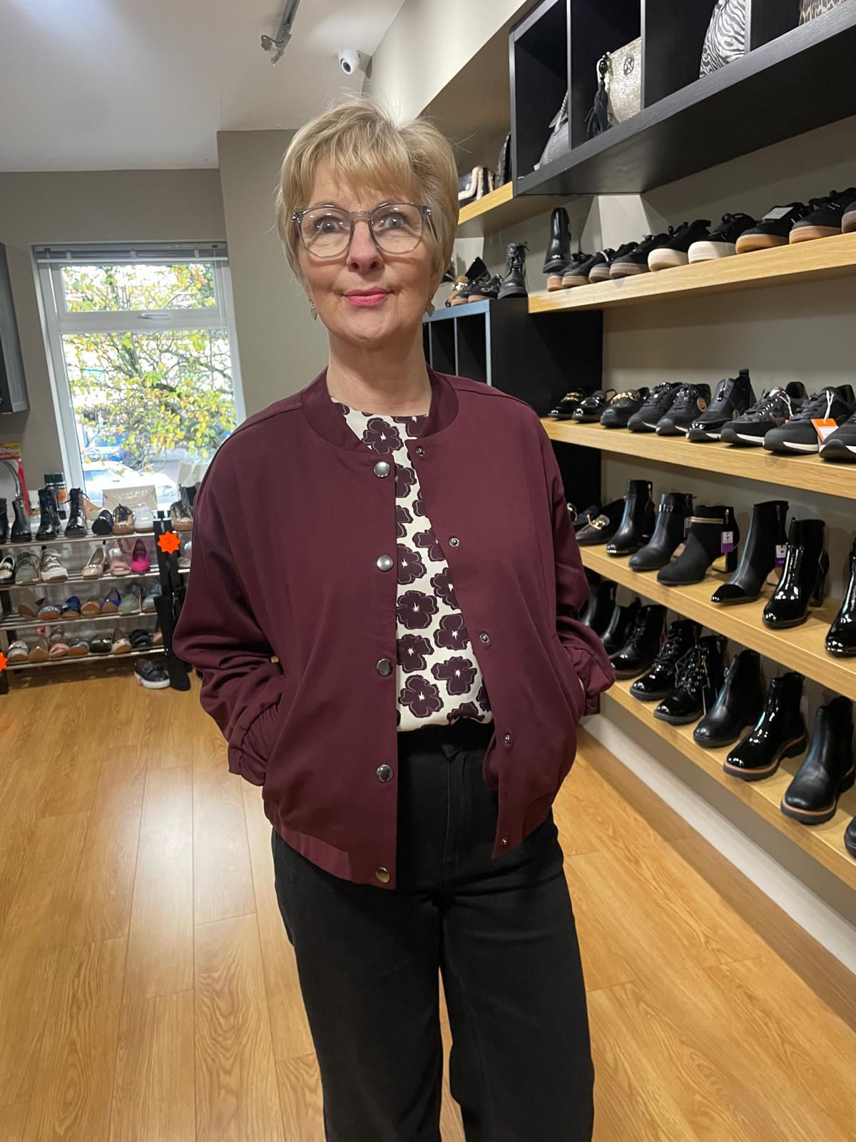 -Freequent wine bomber style jacket with cuffed sleeves & hem.