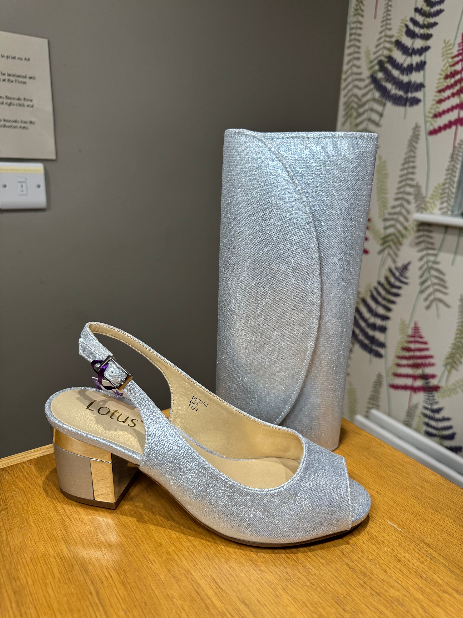 Lotus Silver Claire Clutch Bag with Chain Strap to Match Lotus Evelyn Silver Slingback