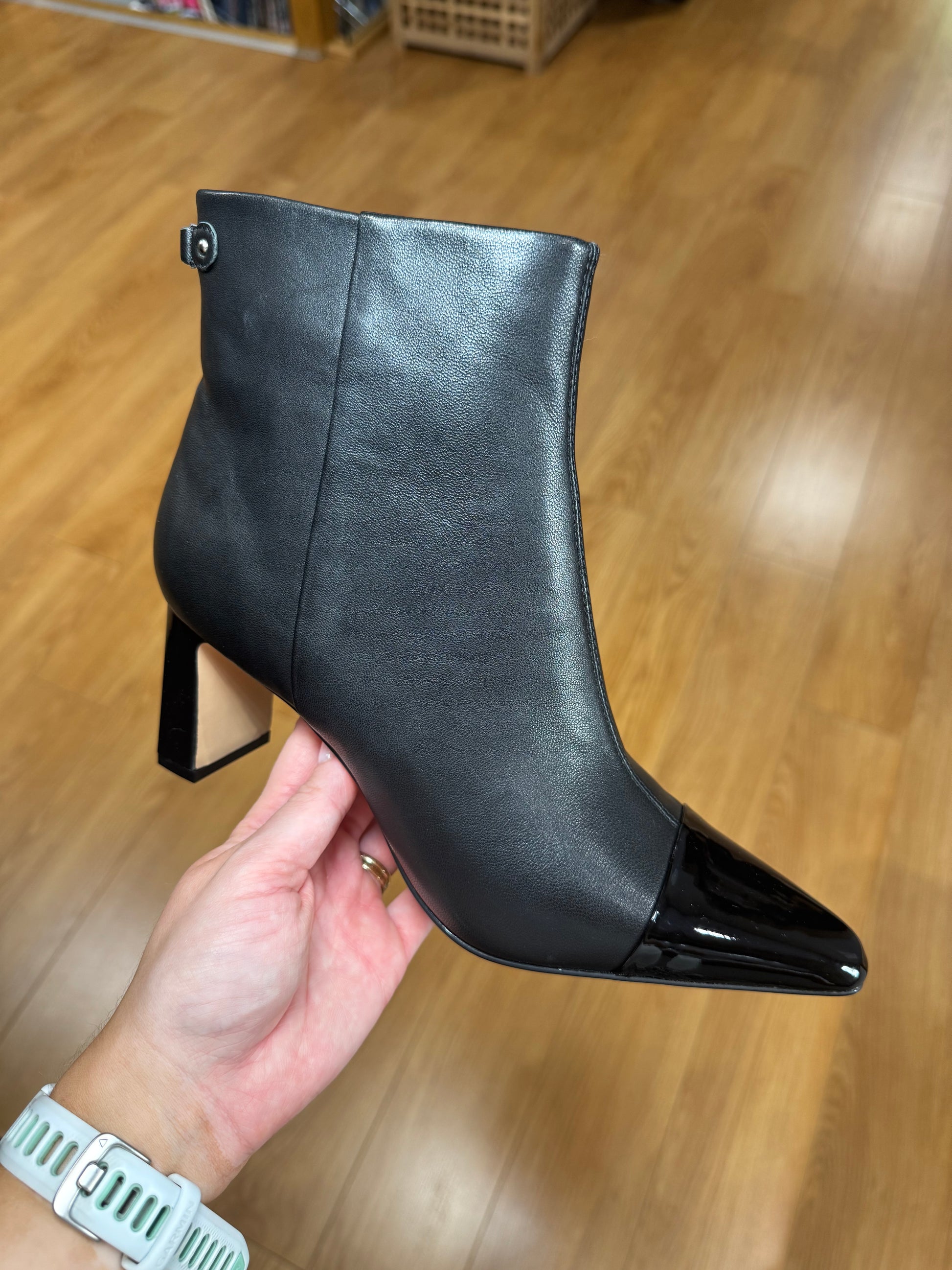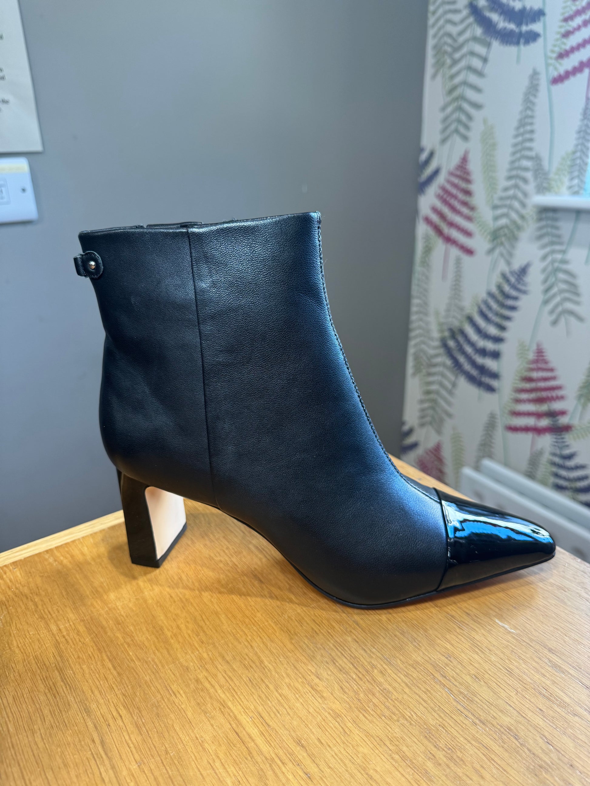 Lotus Soft Leather Sleek Pointed Toe Boot with Patent Toe Trim & 6.5cm Heel