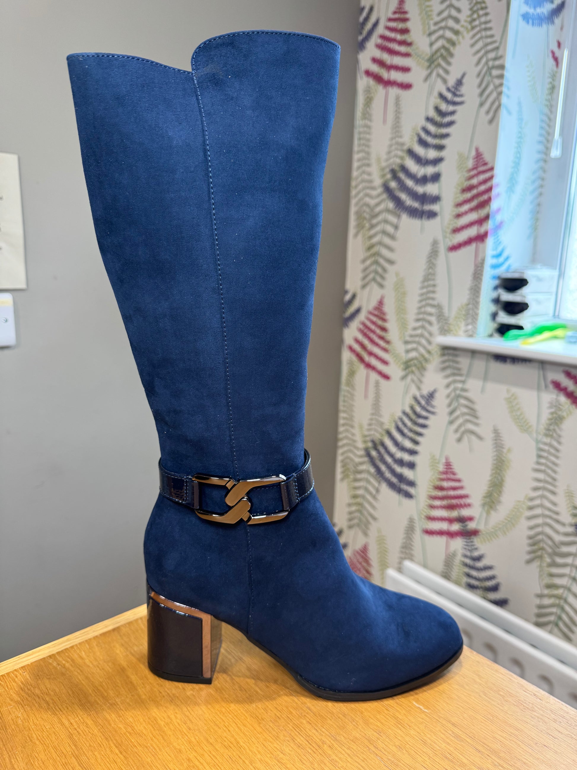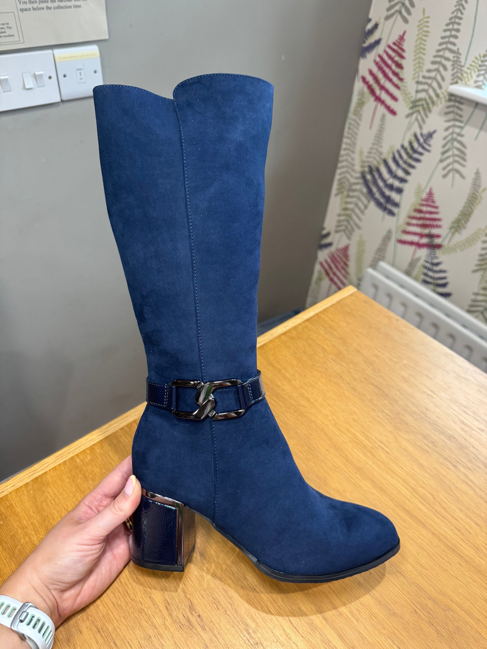 Lotus Block Heeled Knee Boot in Suede Finish with Gunmetal Buckle Design