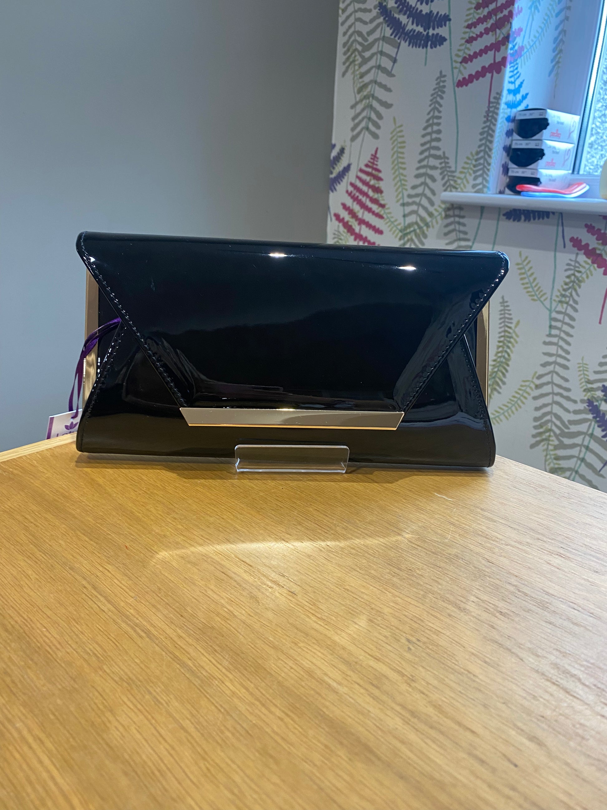 Lotus Black Patent Martha Clutch Bag with Chain Strap to Match Lotus Aubrey Black Patent Shoe