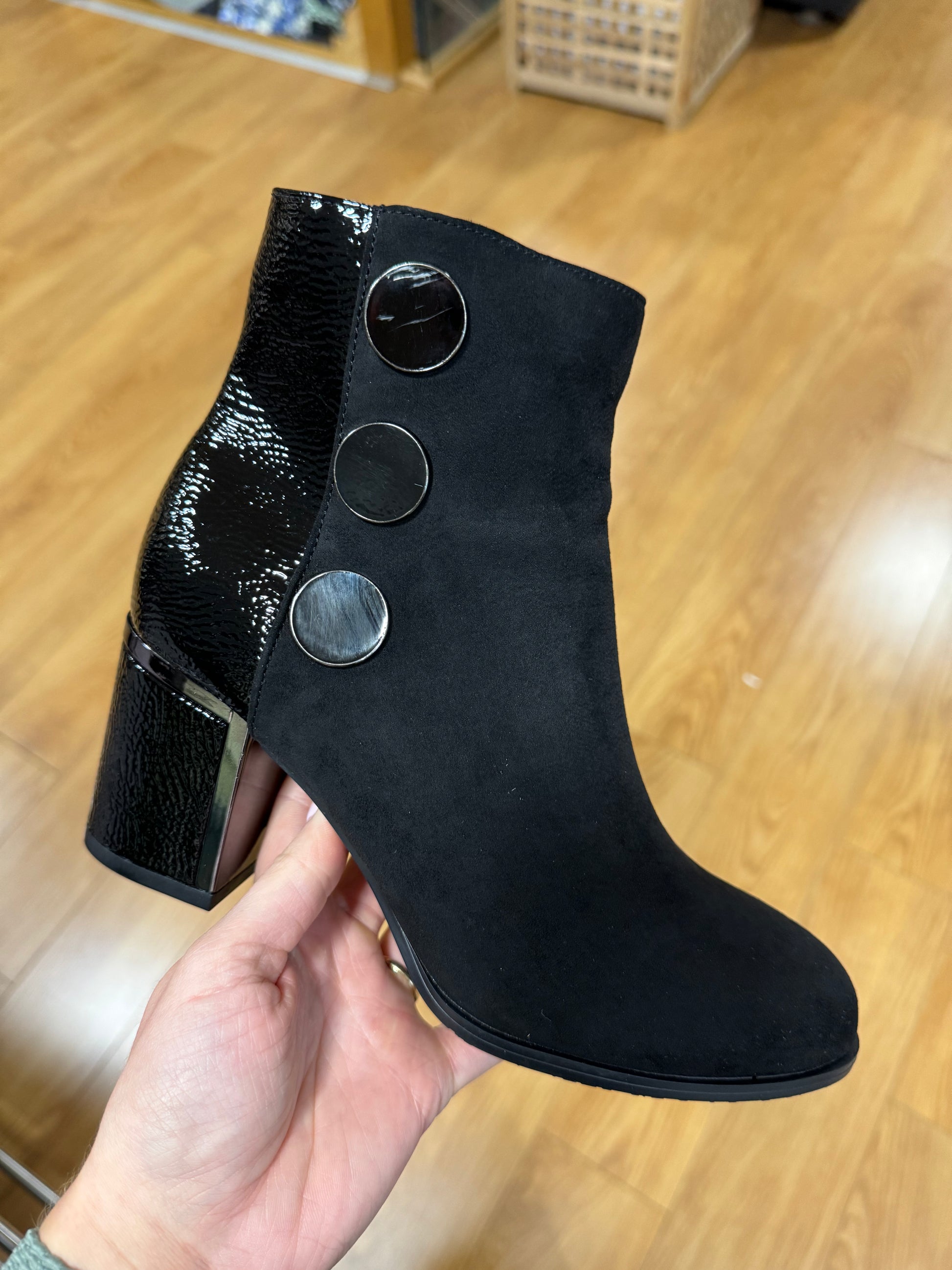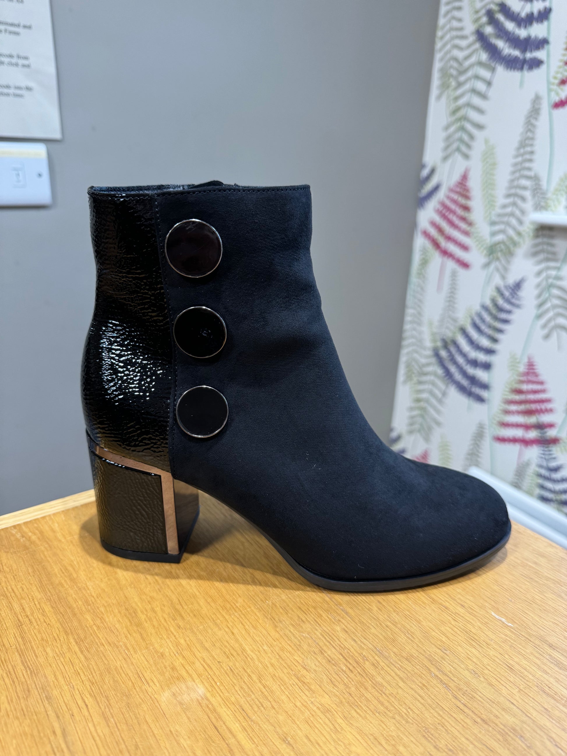 Lotus Block Heel Short Ankle Boot with Patent Heel/Back & 3 Button Detail