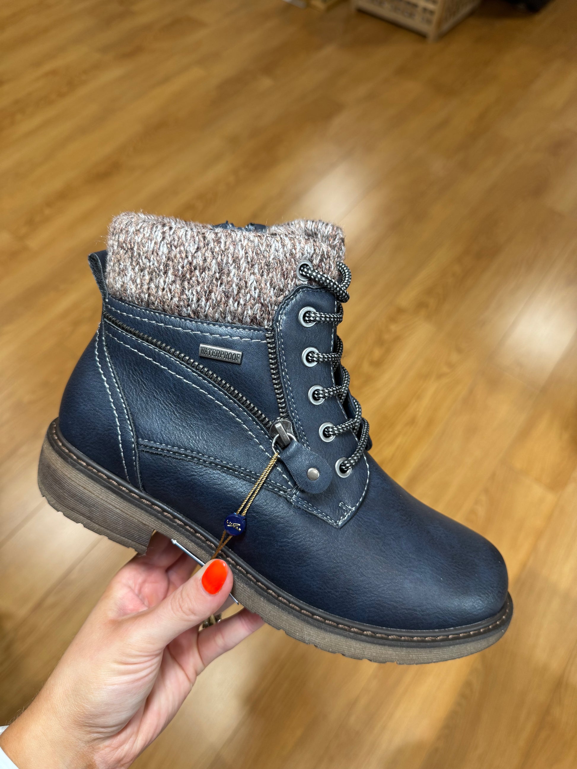 Lunar Lace Up (Inside Zip Opening) Waterproof Boot with Multi Knitted Cuff & Zip Detail