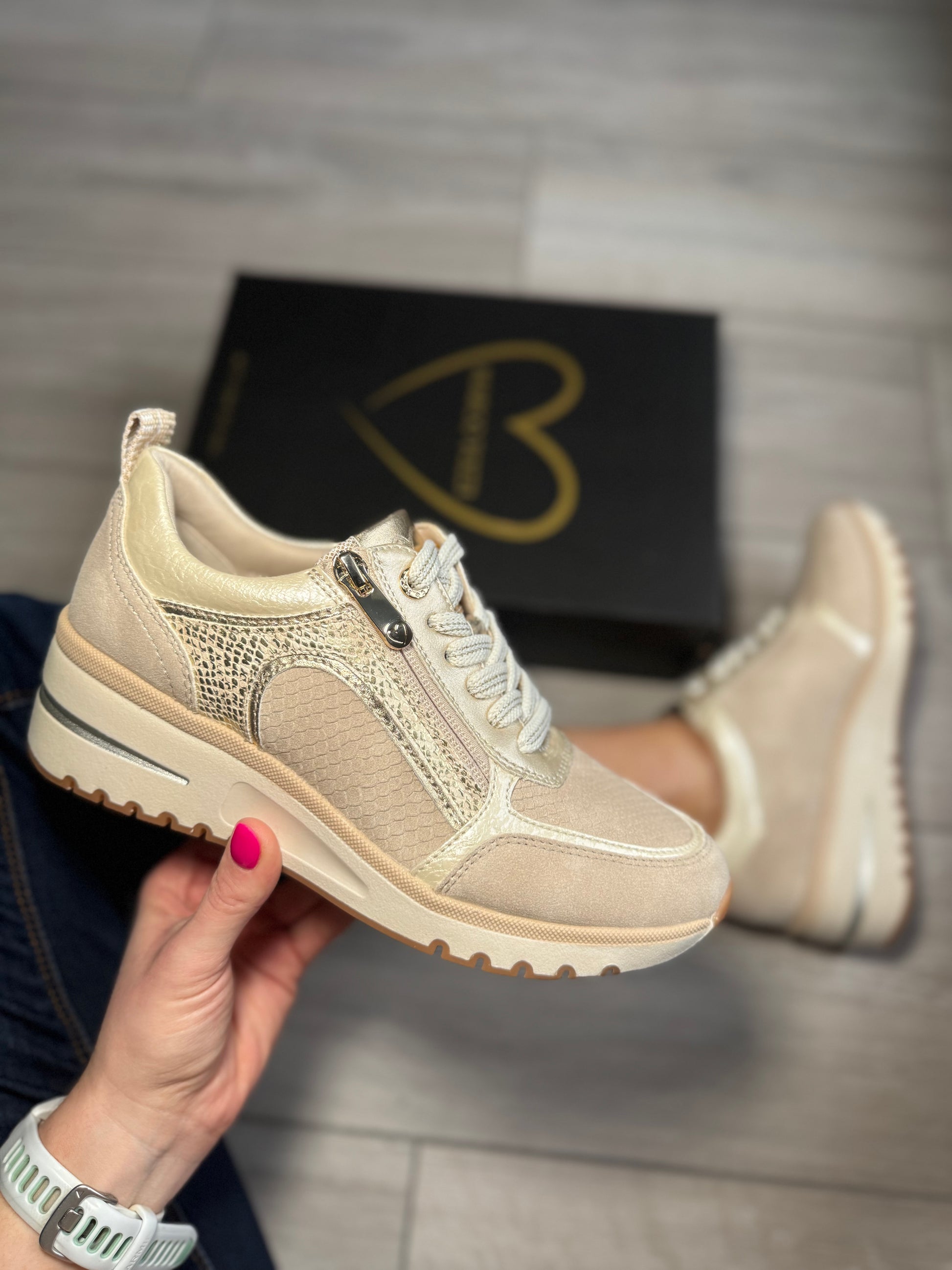 Marco Tozzi Lace Up Trainer (Zip Opening) with Subtle Snake Design & Small Built in Wedge