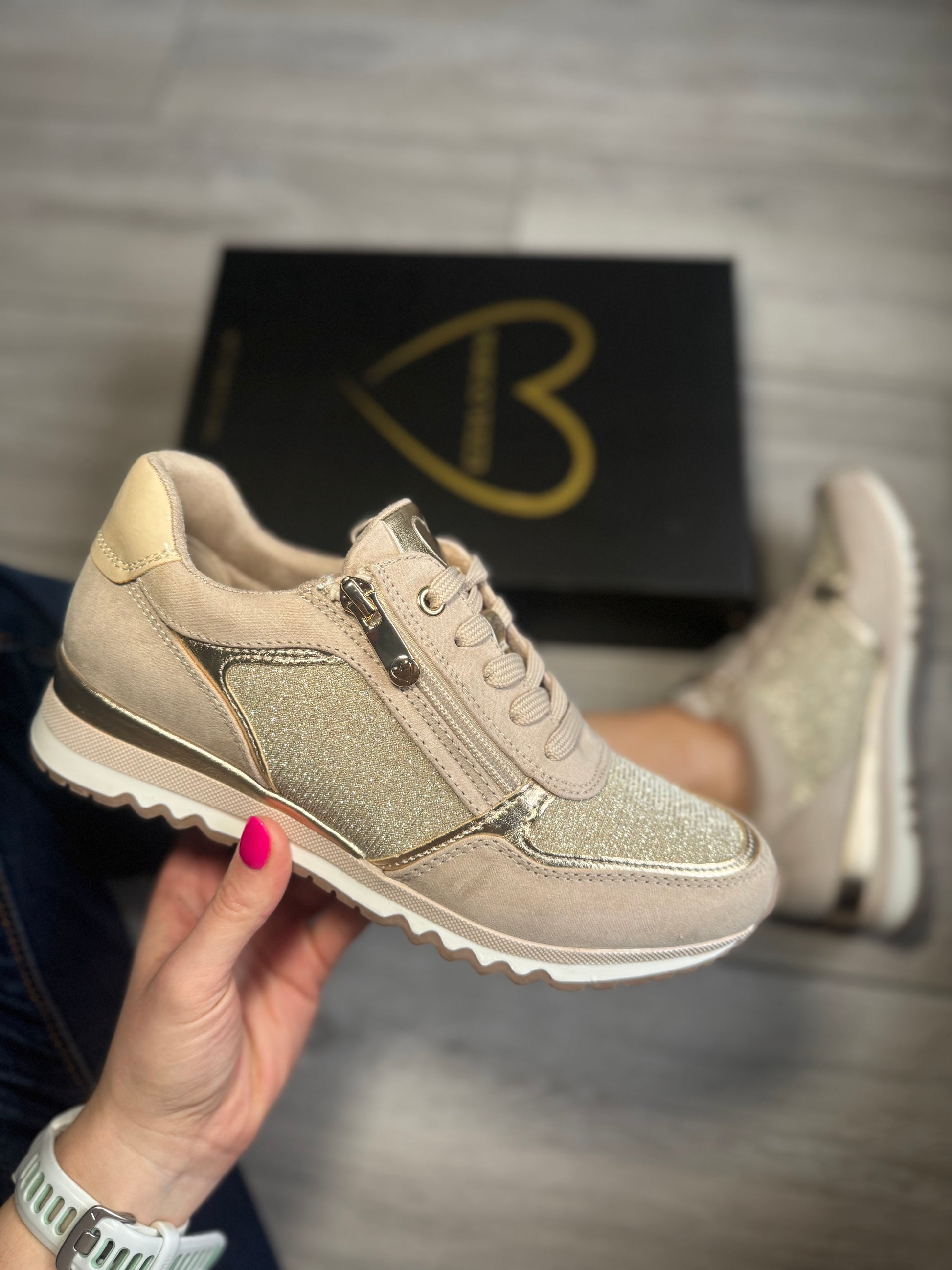 Marco Tozzi Lace Up Trainer (Zip Opening) with Metallic/Sparkle Panels