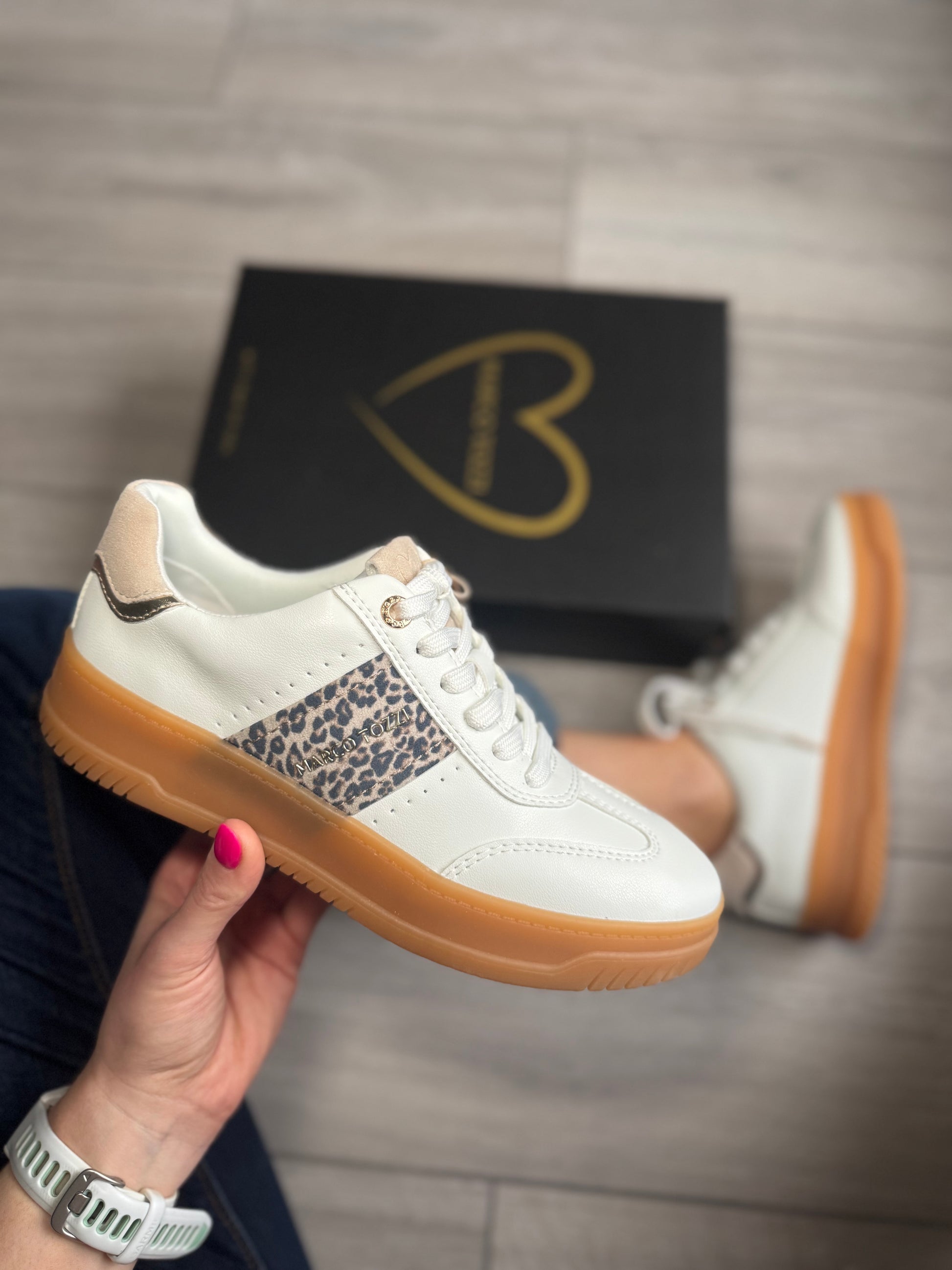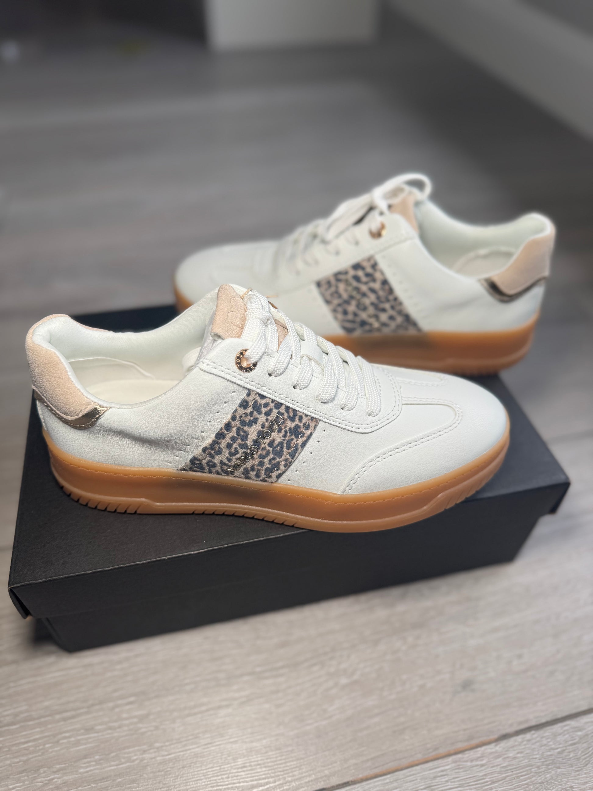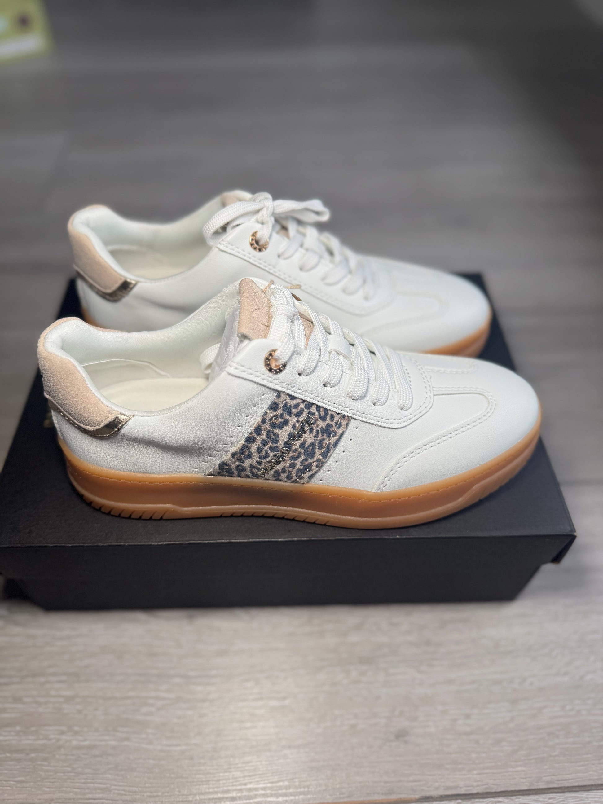 Marco Tozzi Lace Up Trainer with Leopard Print Stripe Design & Gum Sole