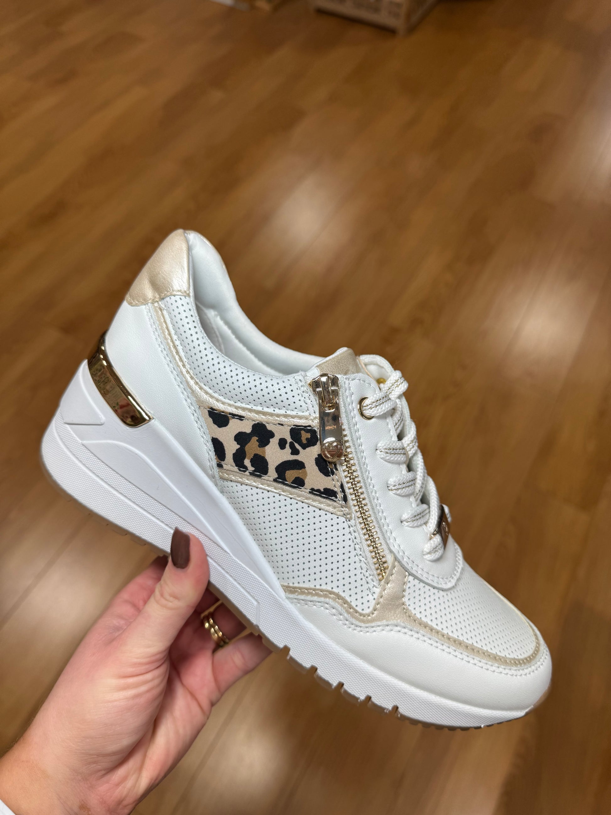 Marco Tozzi White/Leopard Wedge Trainer