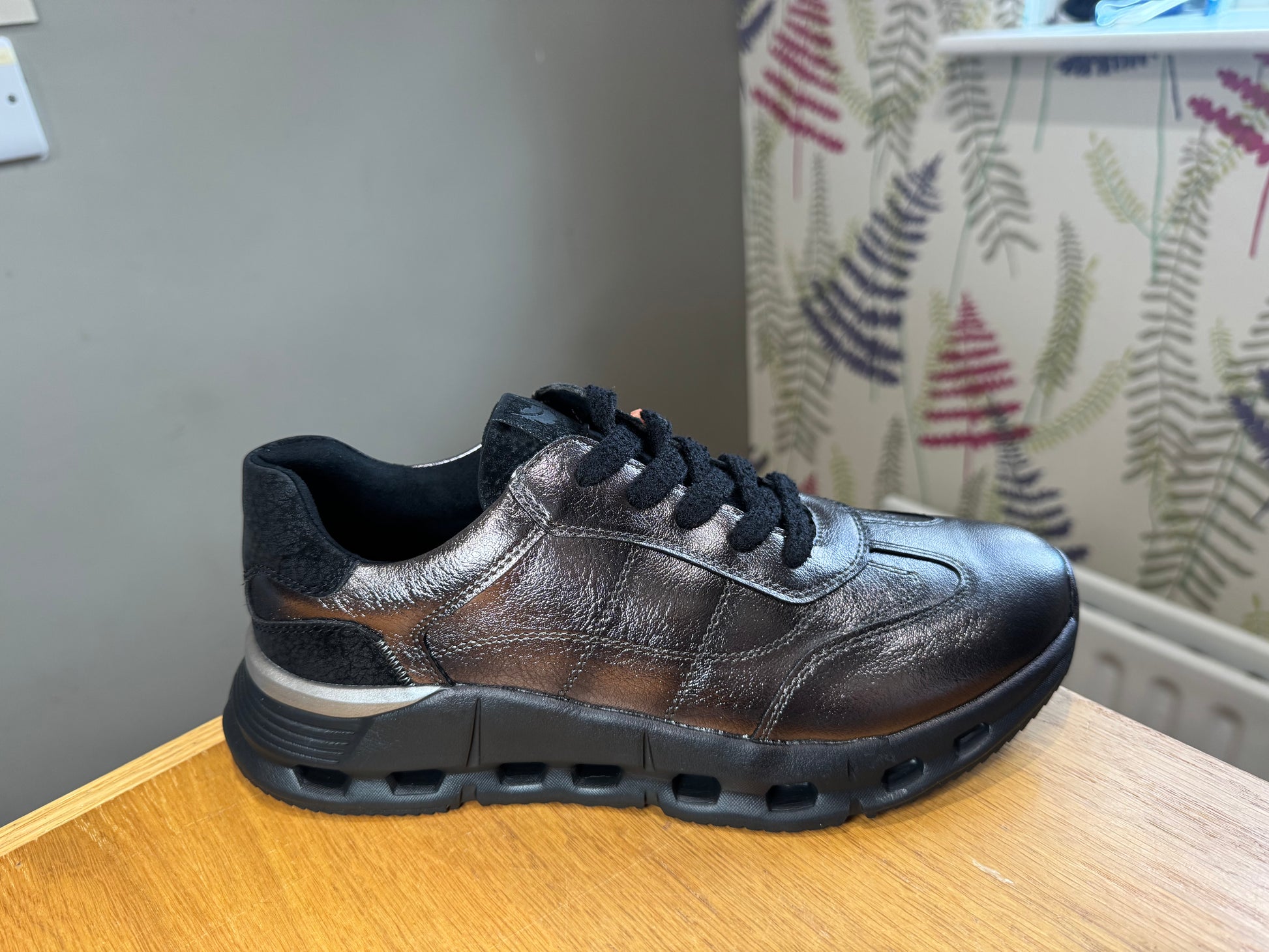 OMG Lightweight Metallic Finish Lace Up Trainer with Sports Style Sole