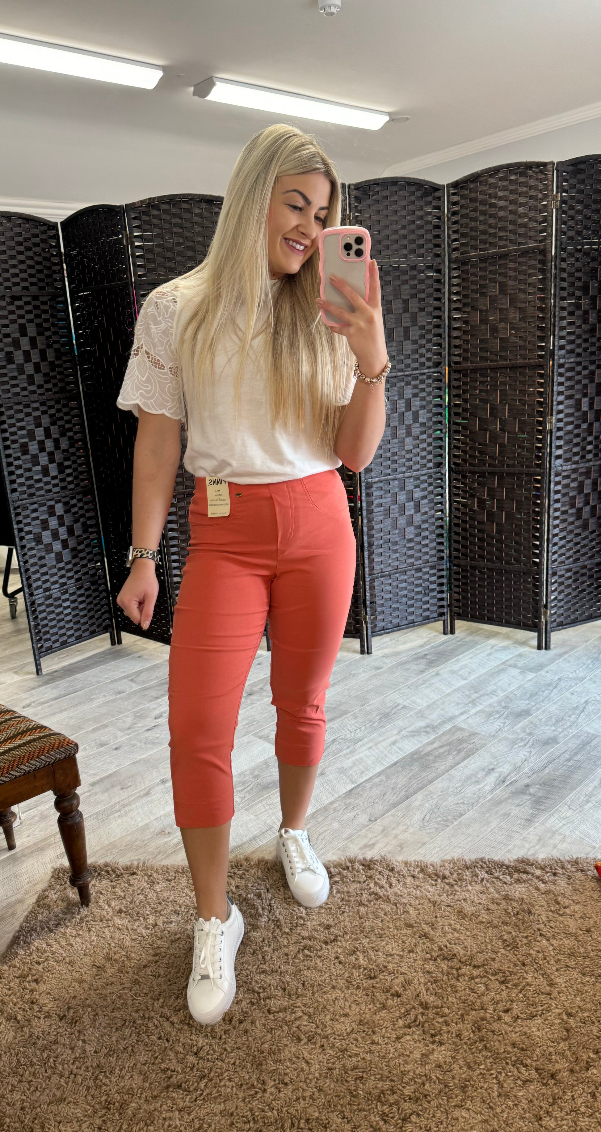 Figure Sculpting Bengaline Crop Trousers. Flattering slim fit three-quarter length trouser, with elasticated waist and tummy control. Super stretchy fit to provide all-day comfort.