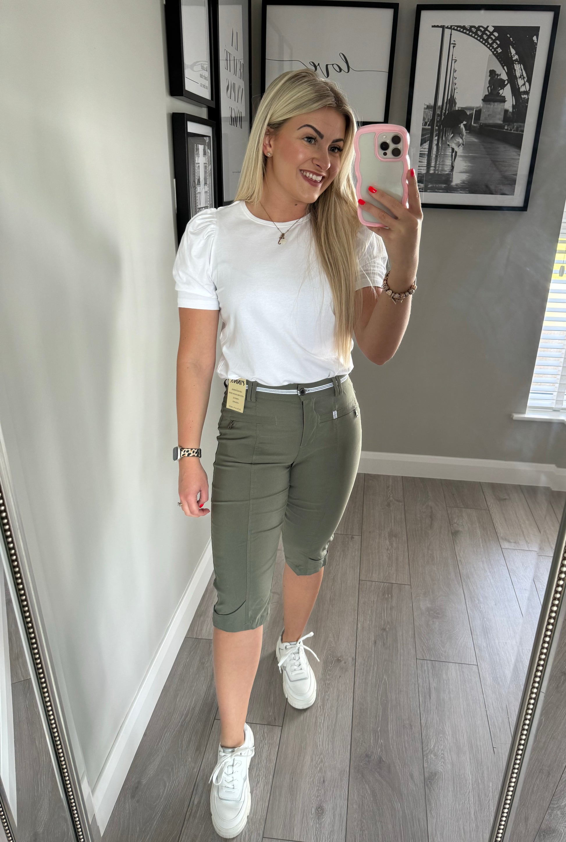 From our best selling Pinns range we have the crops in pedal pusher length (just below the knee). In deep navy with two toned striped effect belt built in, double pocket front & buttoned hem these Pinns don't lack detail!