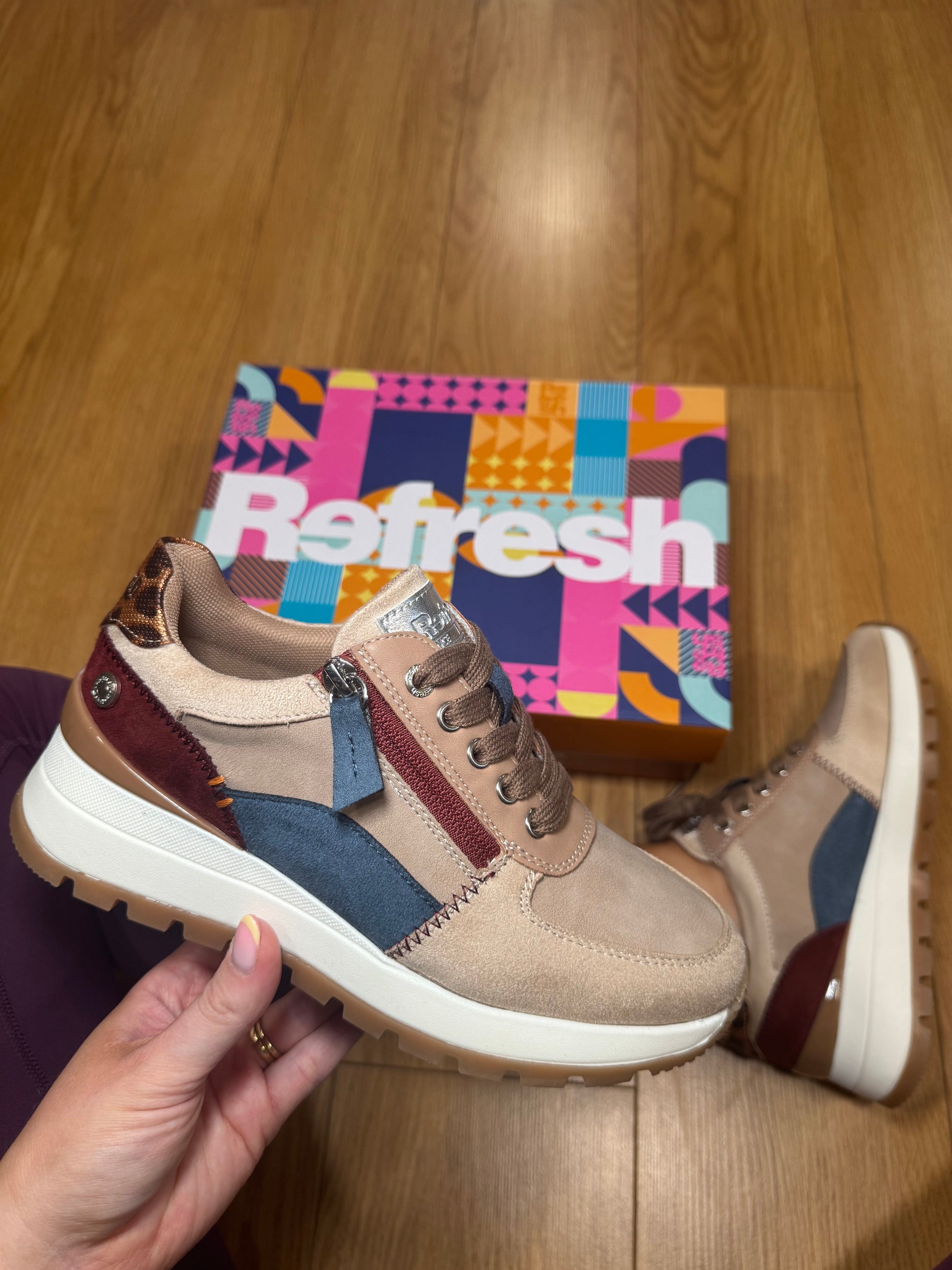 Refresh Lace Up Trainer with Multi Coloured/Leopard Print Panels & Zip Opening