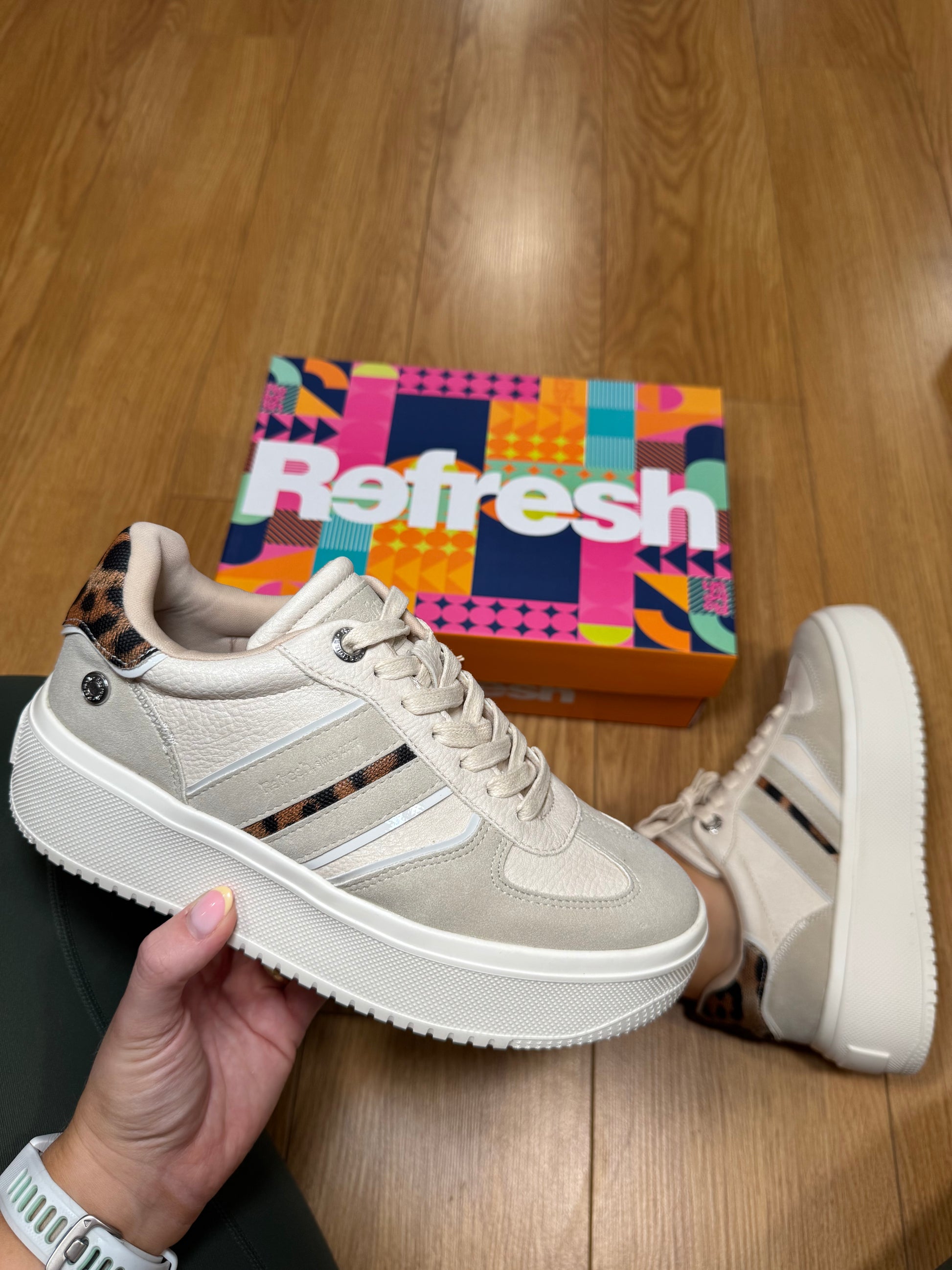 Refresh Lightweight Lace Up Platform Trainer with Contrasting Leopard Stripe/Heel Design