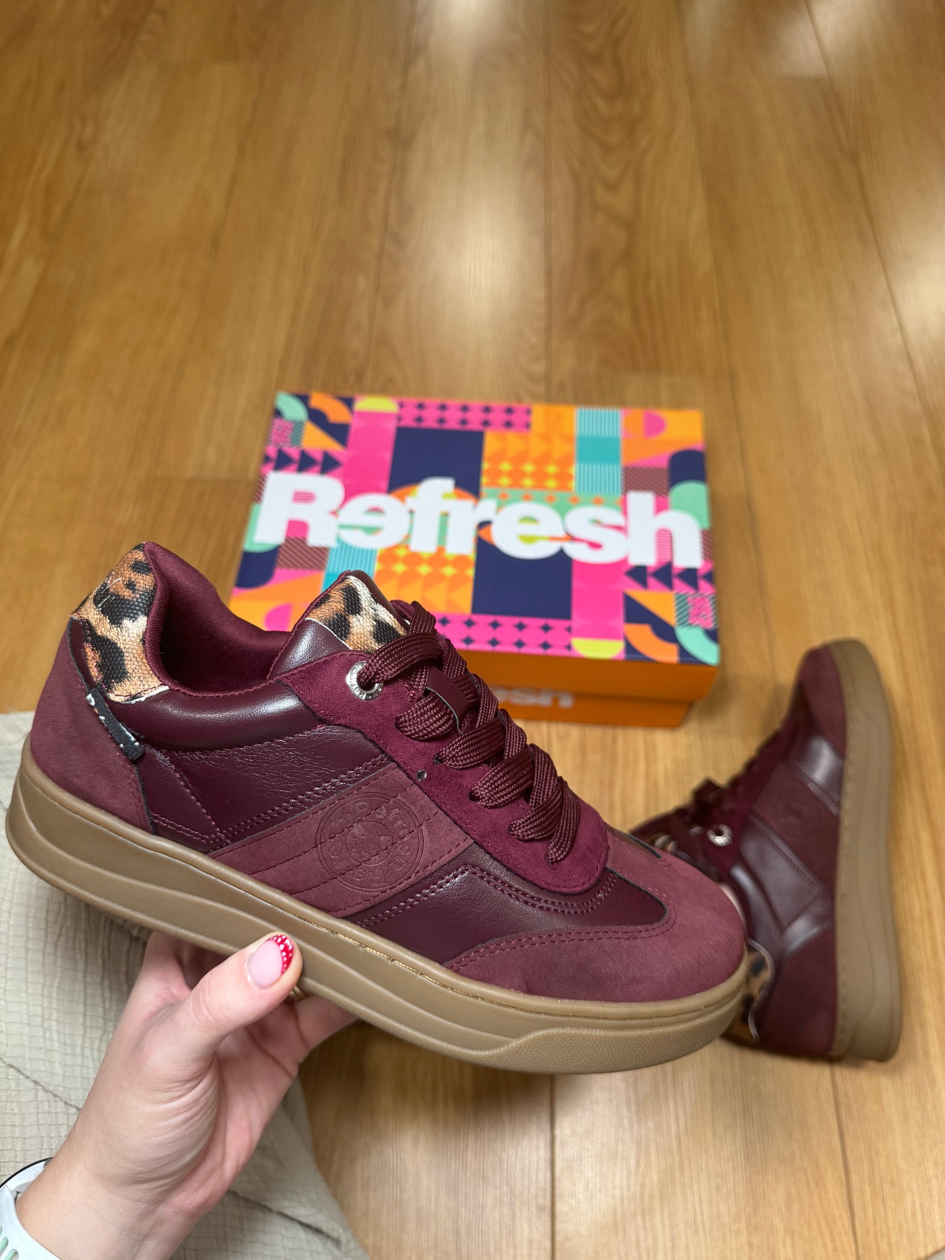 Refresh Lace Up Trainer with Leopard Print Heel Design & Gum Sole