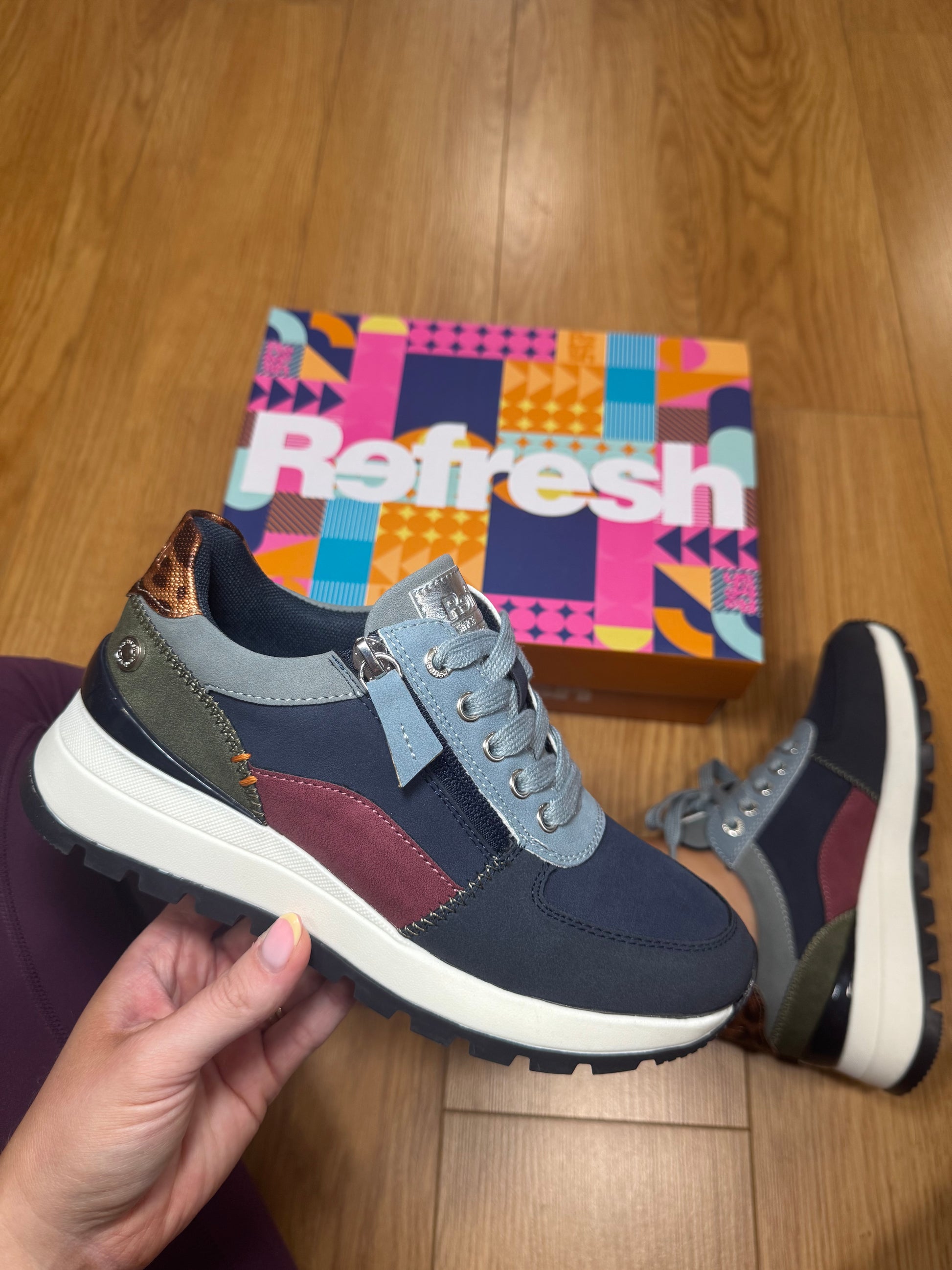 Refresh Lace Up Trainer with Multi Coloured/Leopard Print Panels & Zip Opening