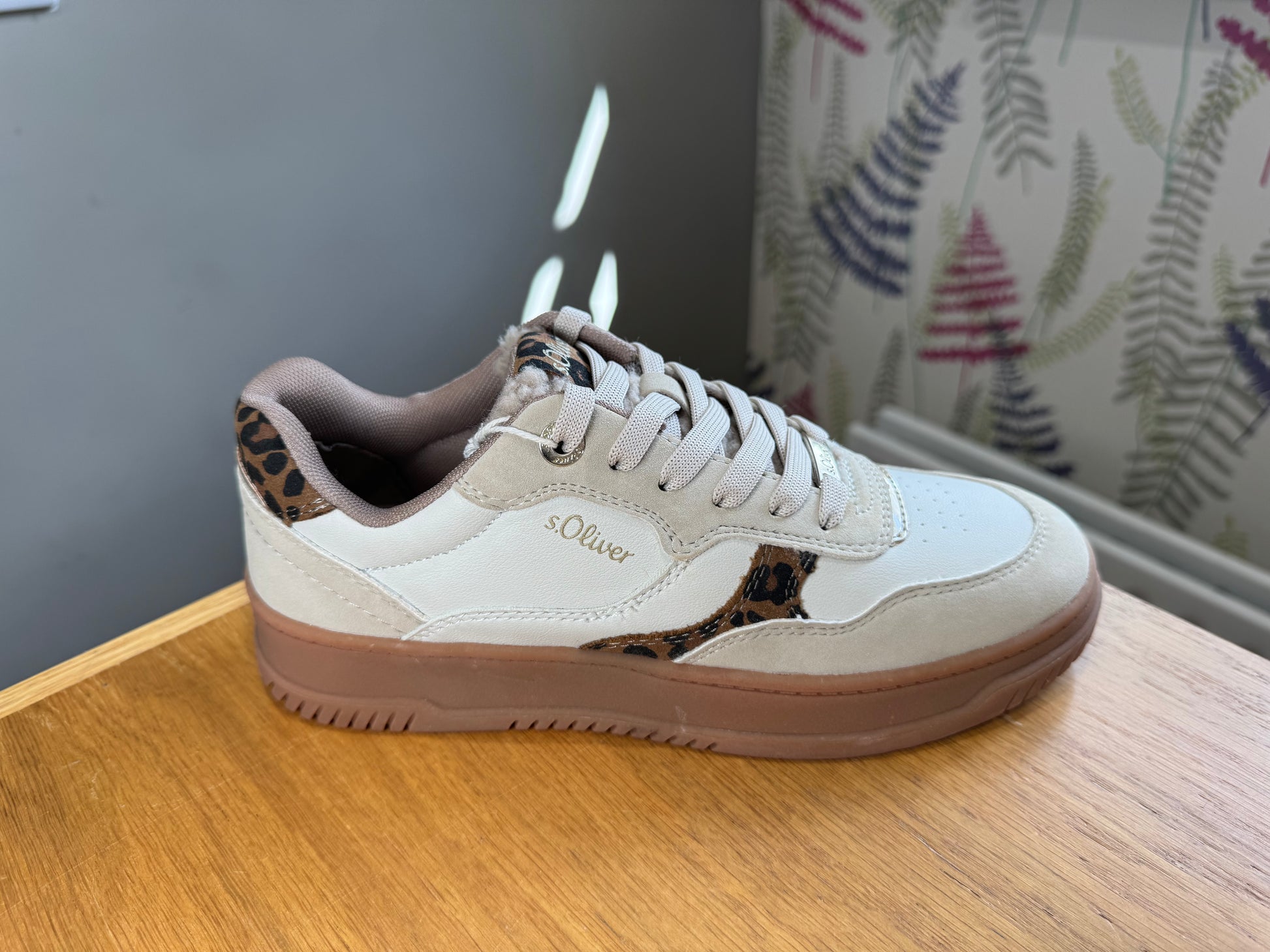 S. Oliver Two Toned Trainer with Leopard Print Design & Teddy Style Tongue