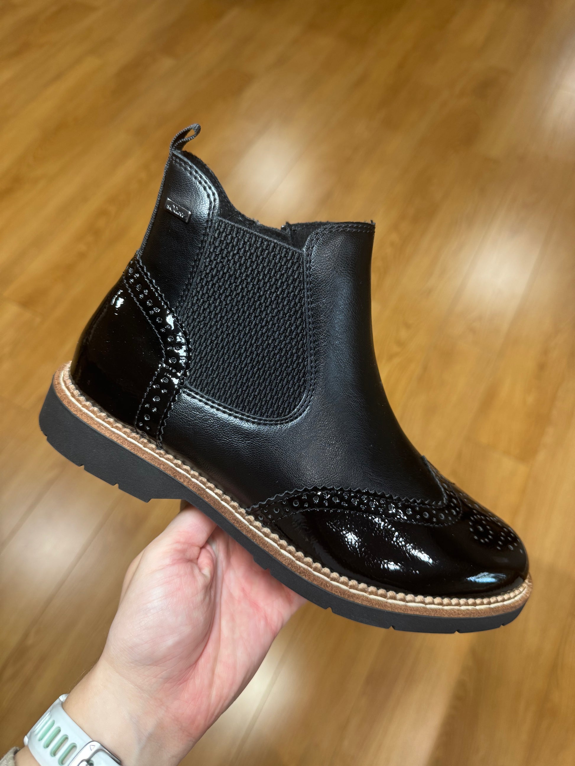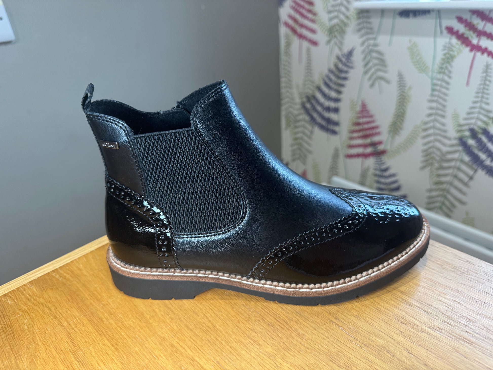 S. Oliver Flat Boot with Patent Brogue Effect Detail (with Inside Zip Opening)
