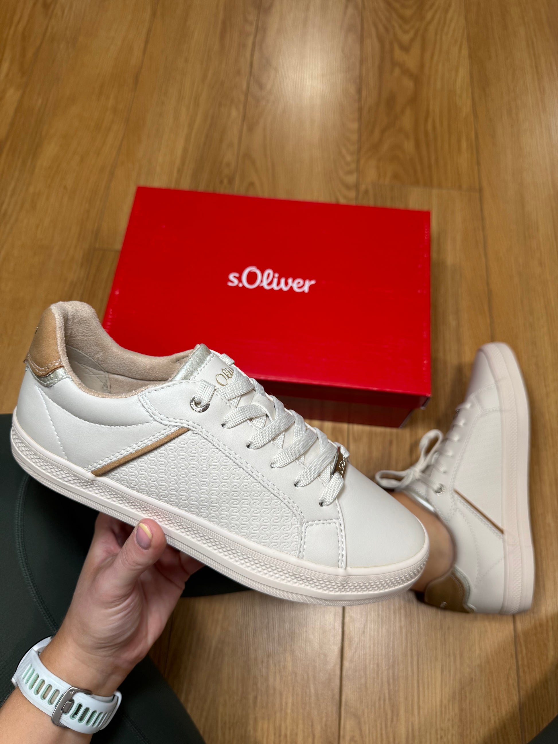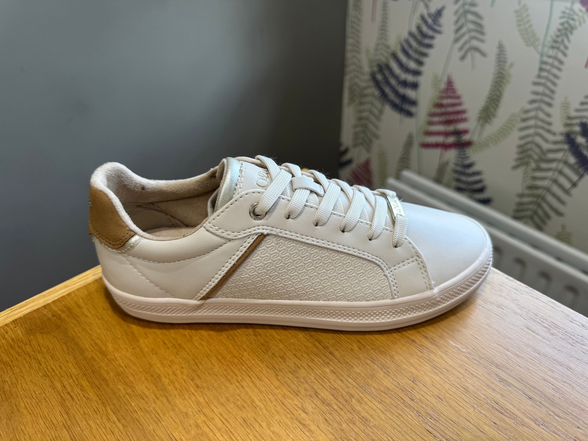 S. Oliver Lace Up Trainer with Matching Cream Sole & Contrasting Heel Trim
