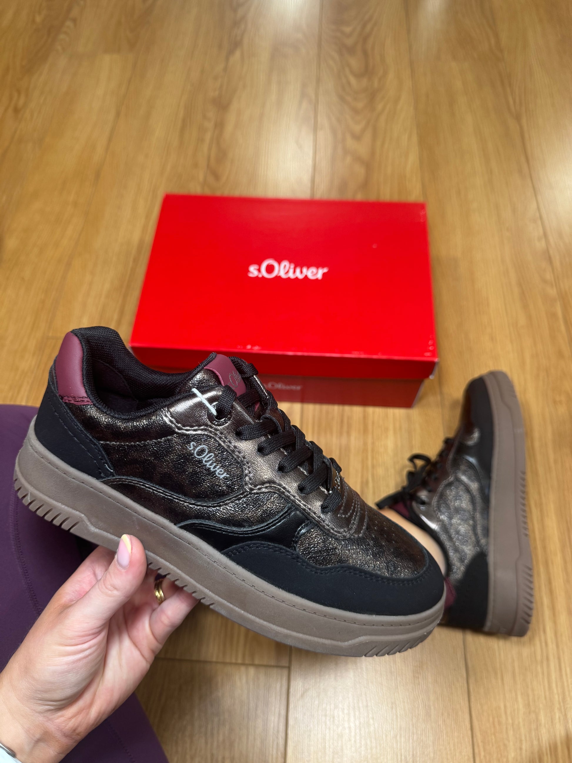 S. Oliver Printed/Metallic Lace Up Trainer with Gum Sole & Contrasting Heel/Tongue Design