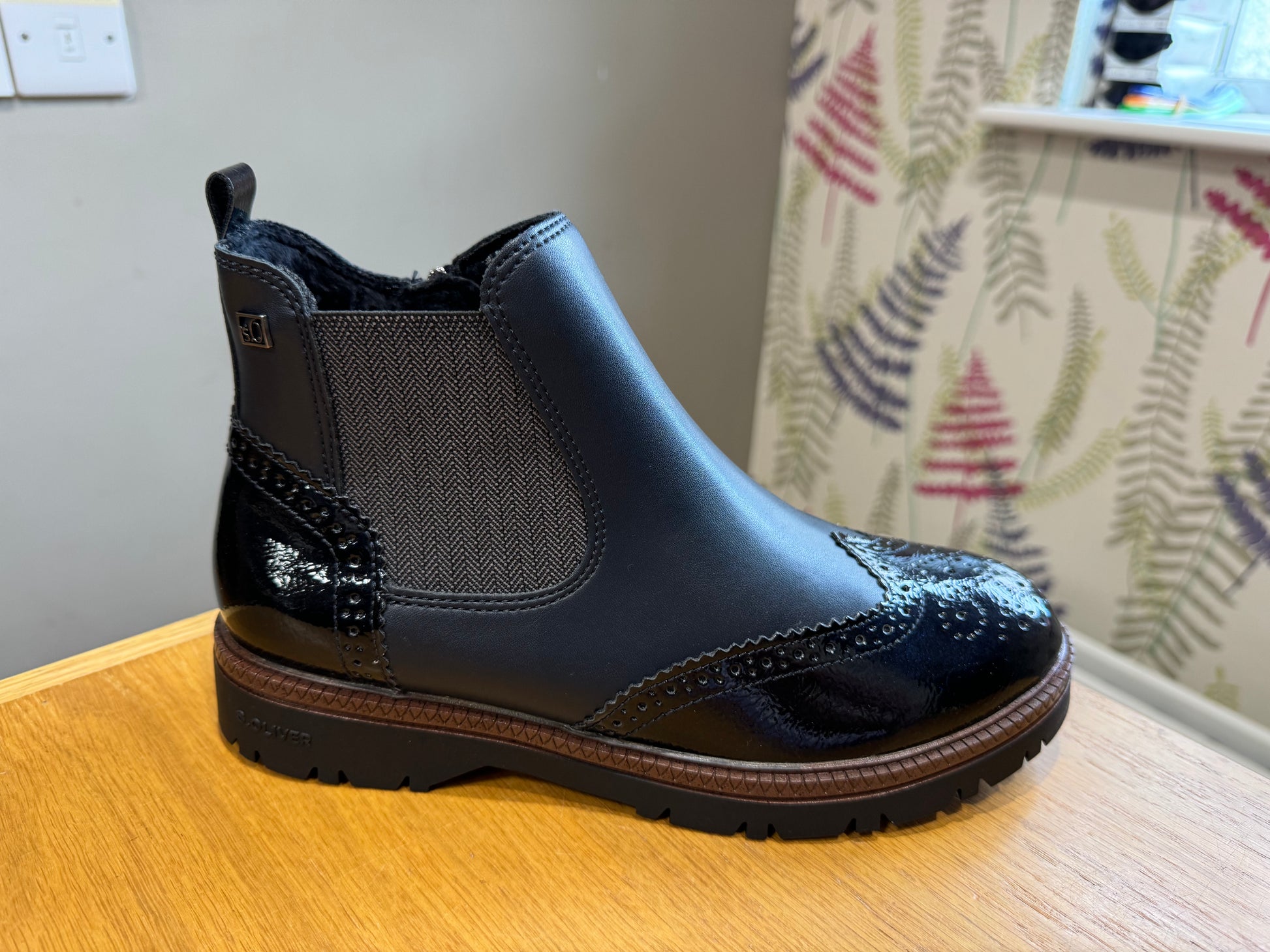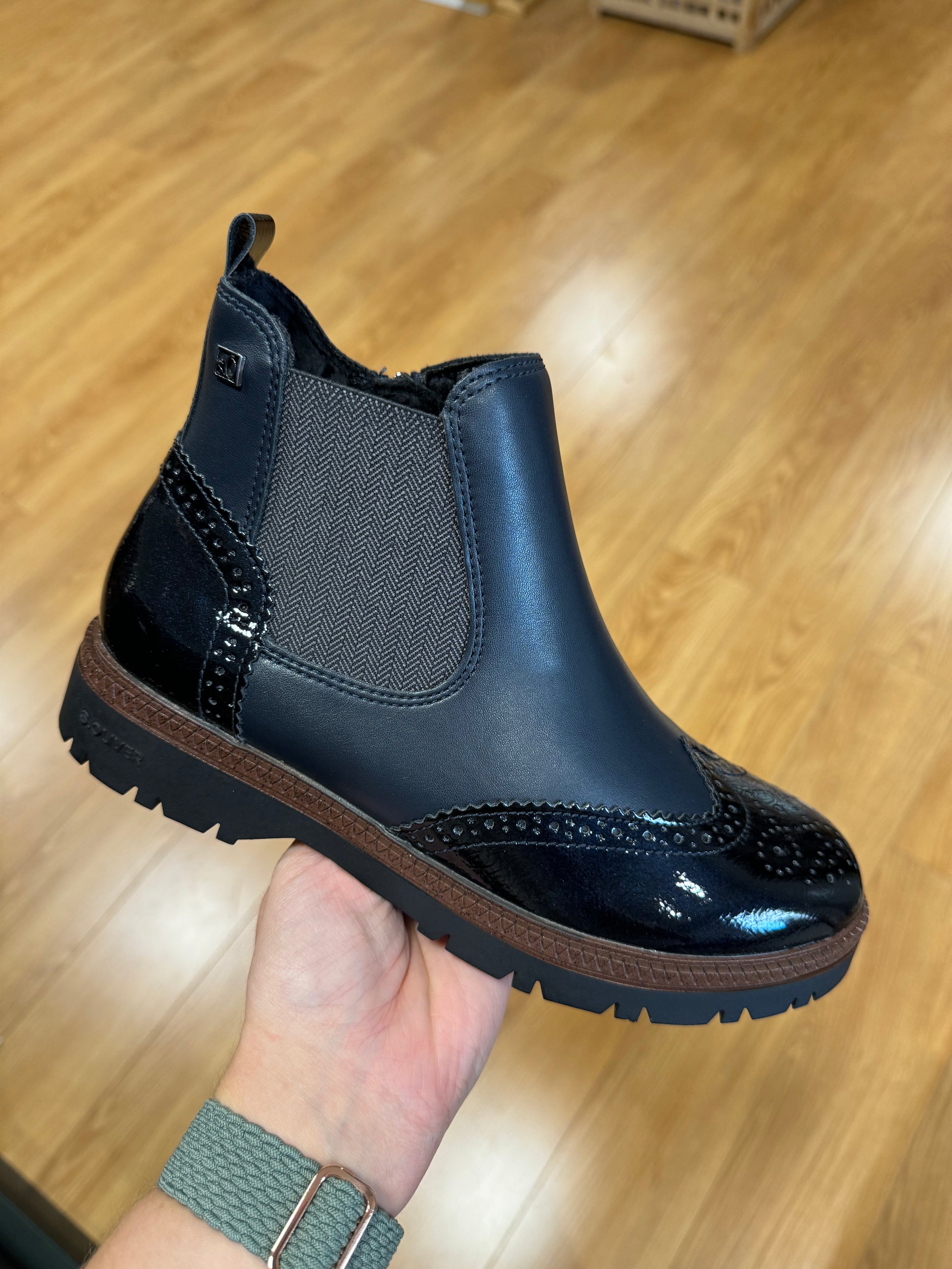 S. Oliver Flat Boot with Brogue Two Tone Leather/Patent Design (Inside Zip Opening)