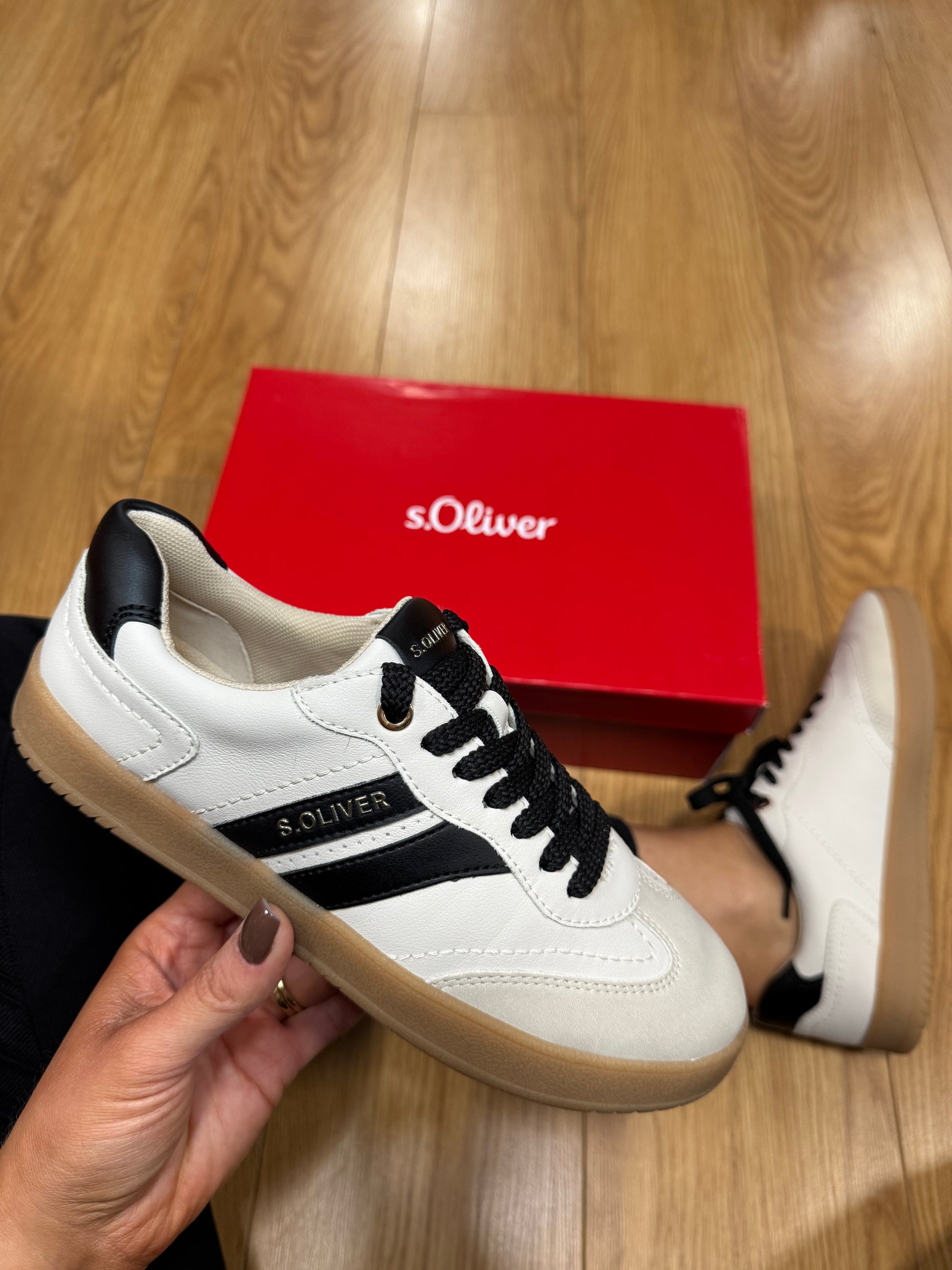 S.Oliver Slim Sole Lace Up Trainer with Contrasting Stripe/Laces & Gum Sole