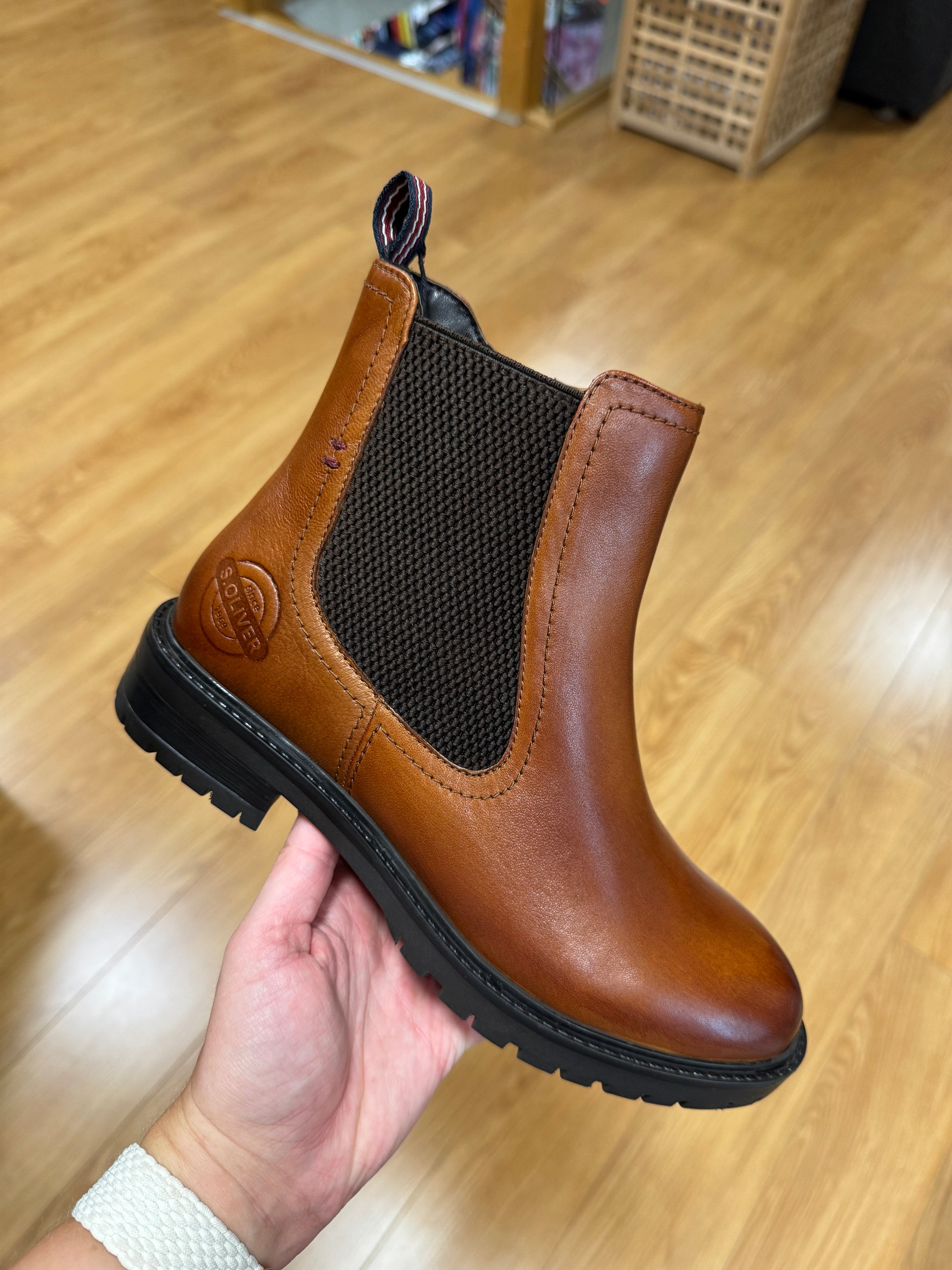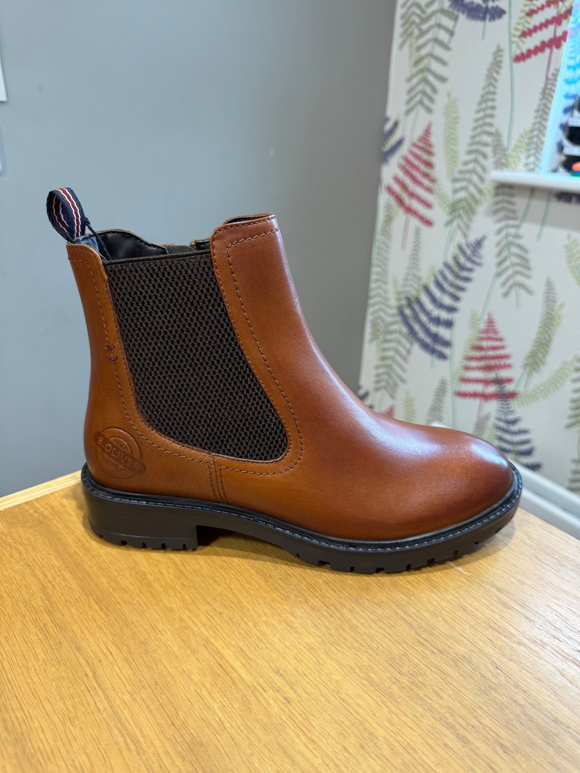 S. Oliver Soft Leather Chelsea Style Boot with Contrasting Gusset & Inside Zip Opening