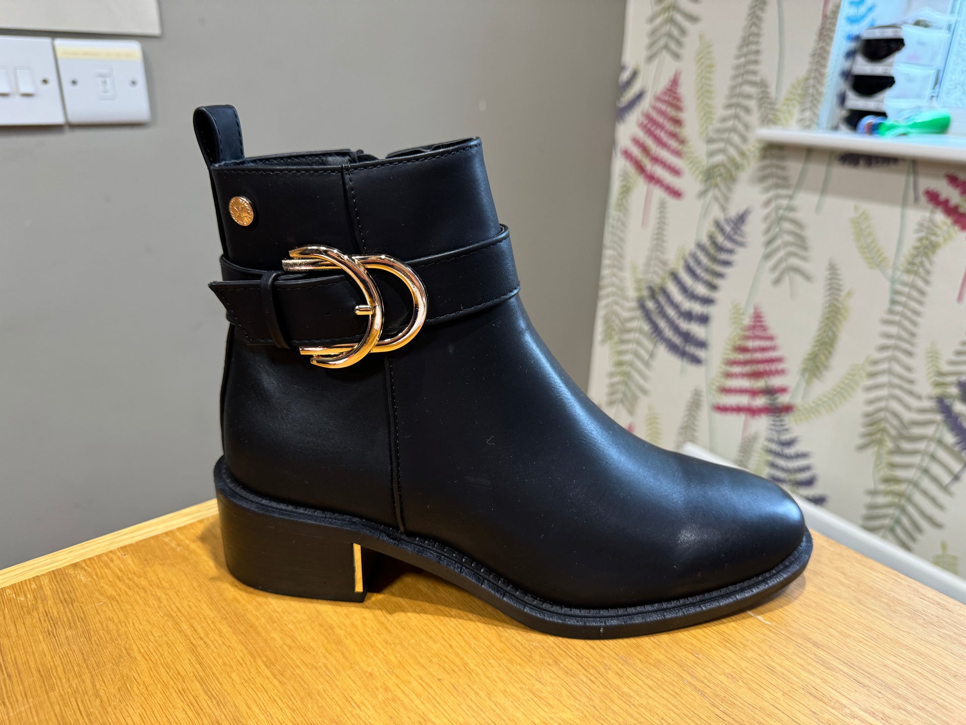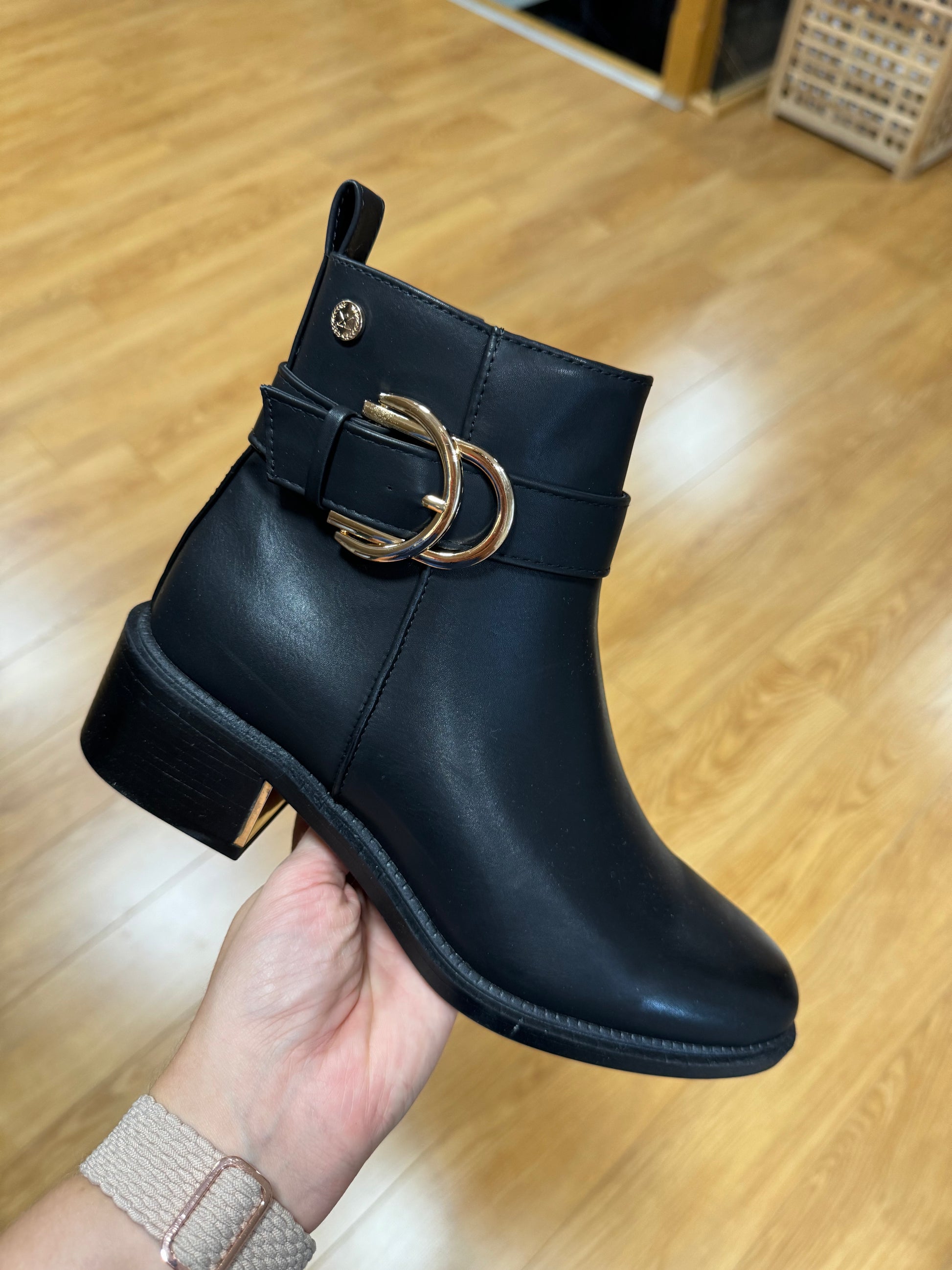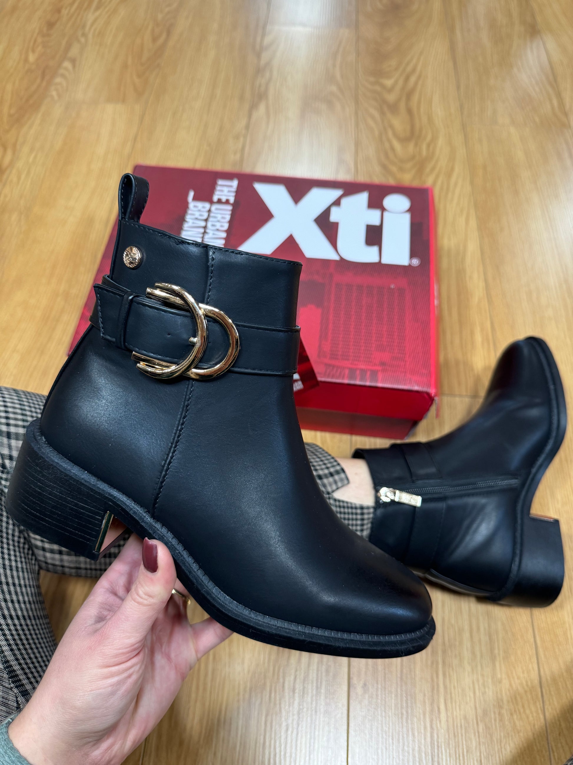XTI Ankle Boot with Gold Buckle/Hardware Detail & Small Block Heel