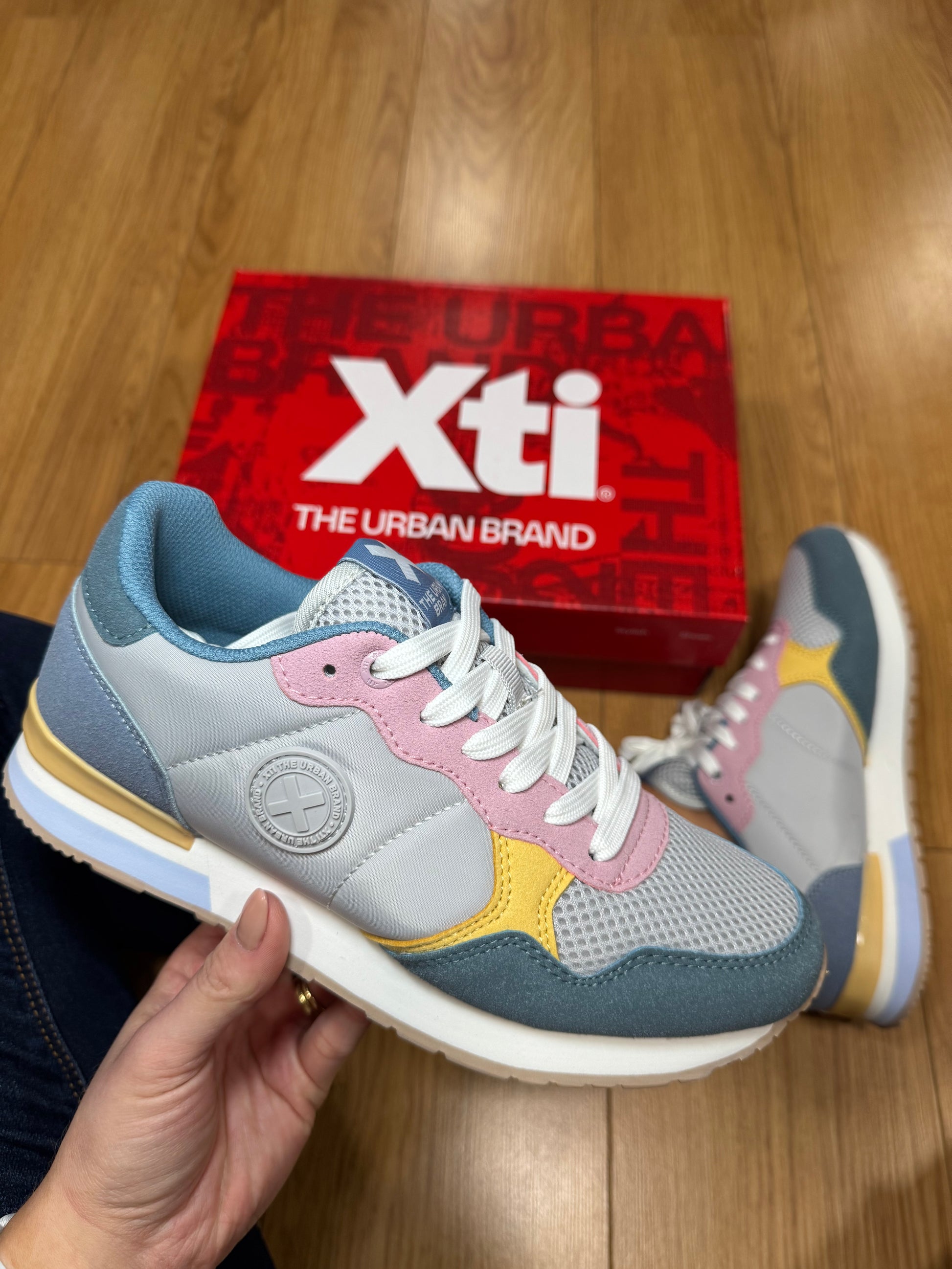 XTI Lightweight Lace Up Knit Trainer in Multi Coloured Finish