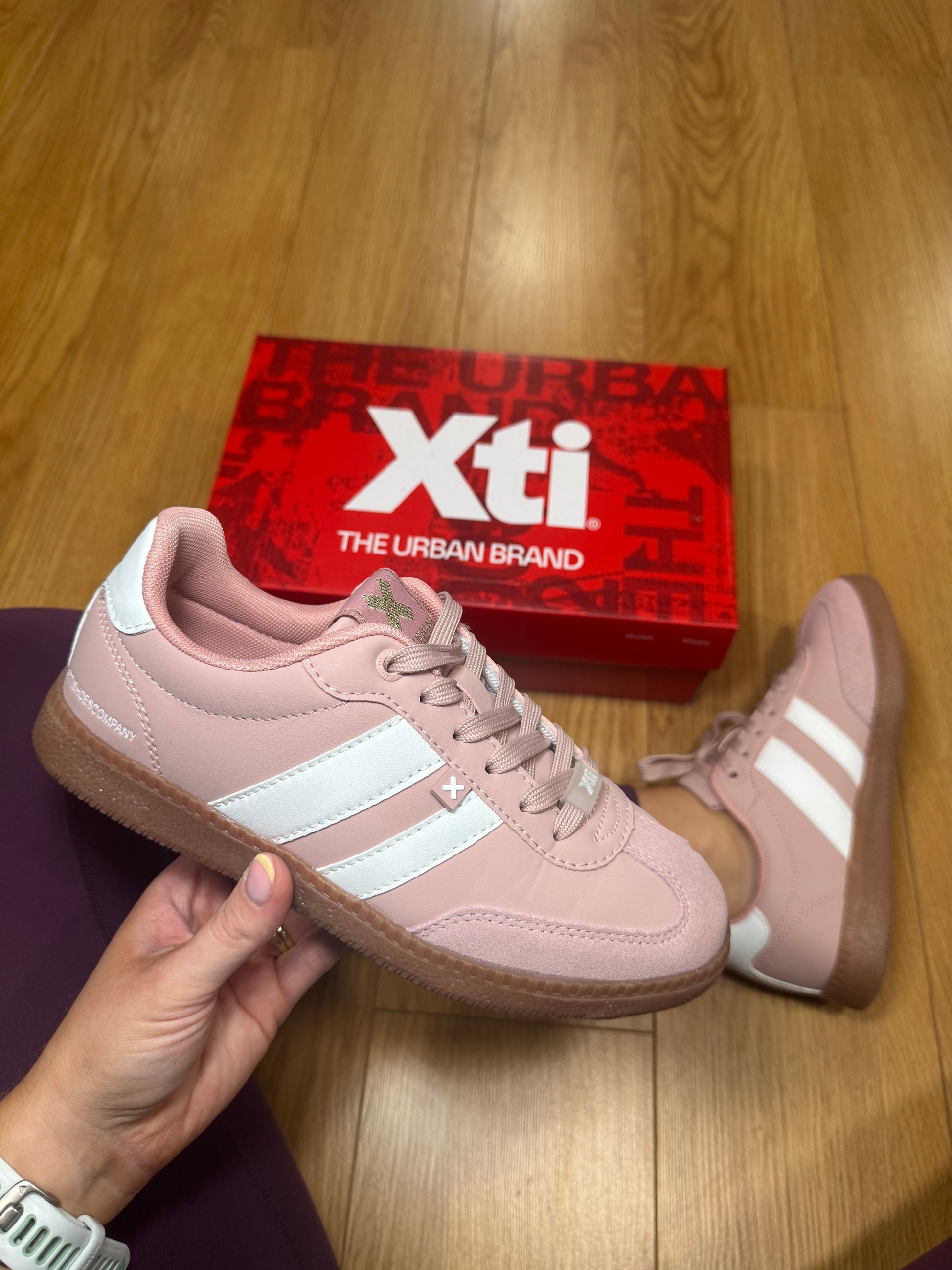 XTI Lace Up Trainer in Stripe Design with Gum Sole