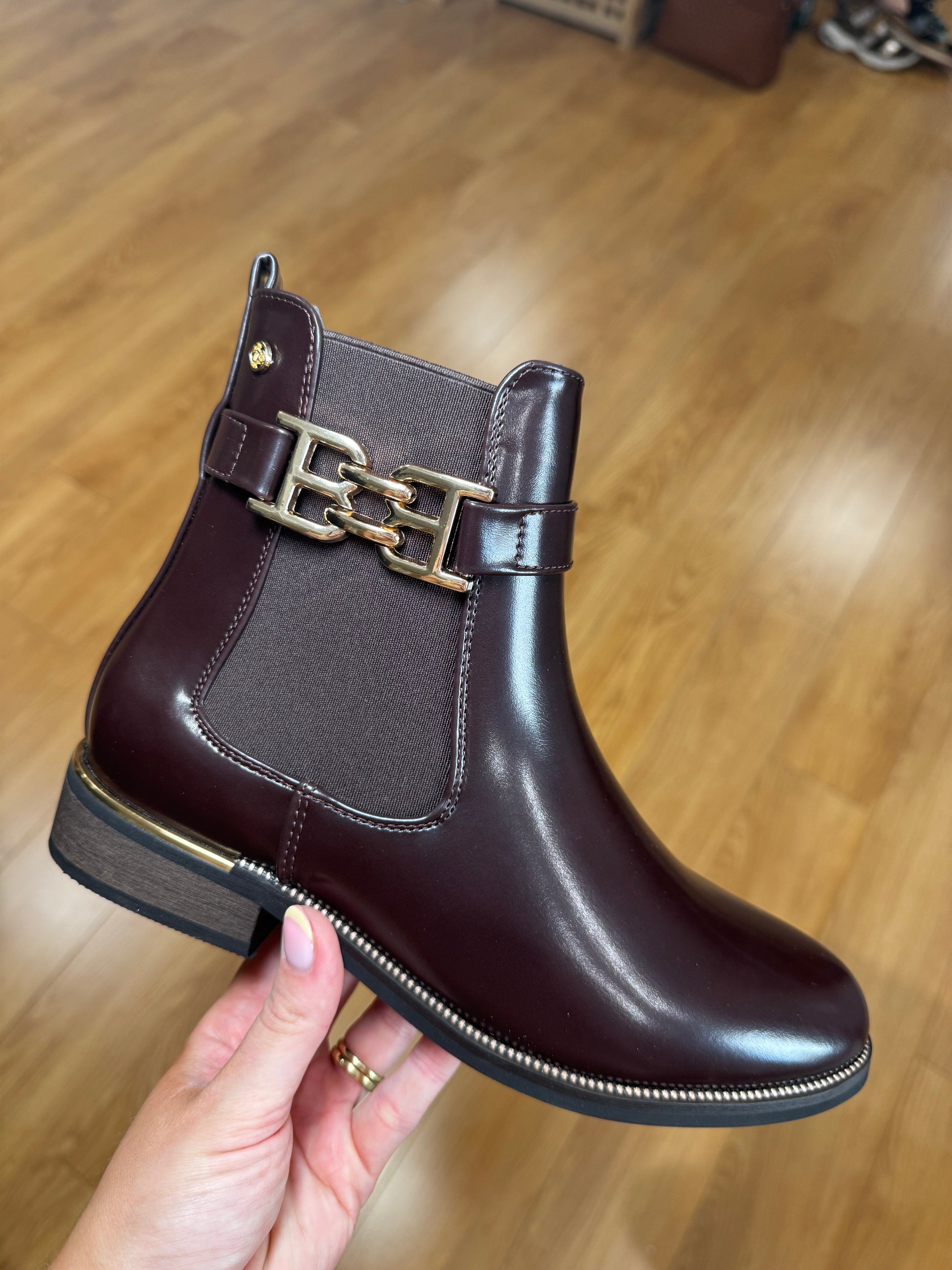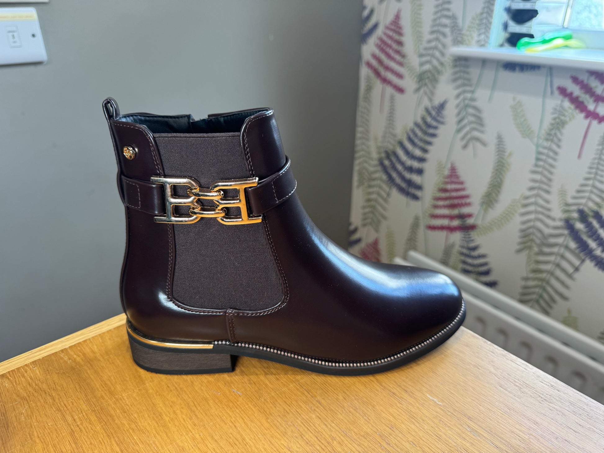 Zanni & Co Flat Chelsea Style Boot with Matching Gusset & Gold Chain/Heel Trim