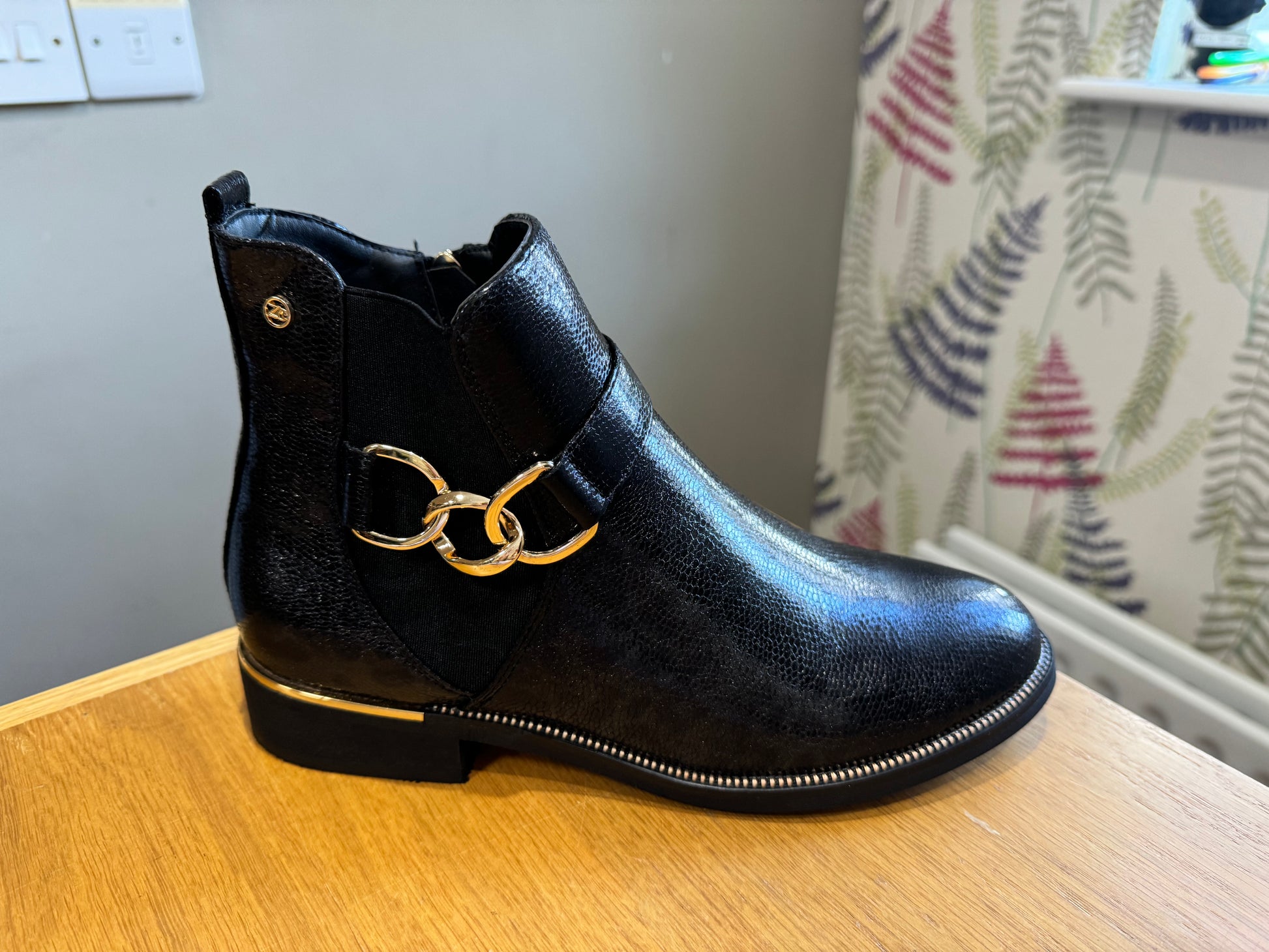 Zanni & Co Flat Boot with Subtle Snakeskin Design & Chain Detail