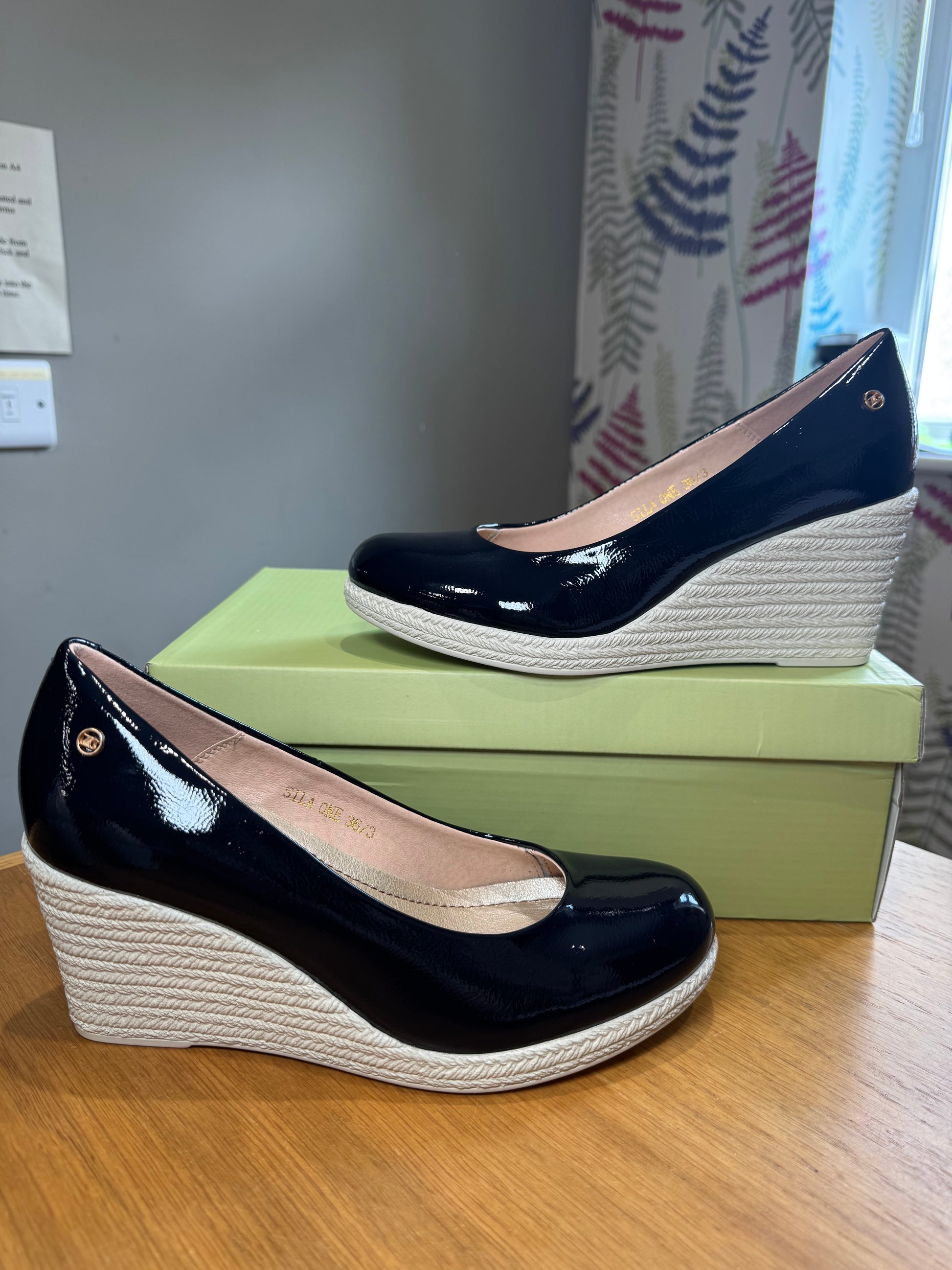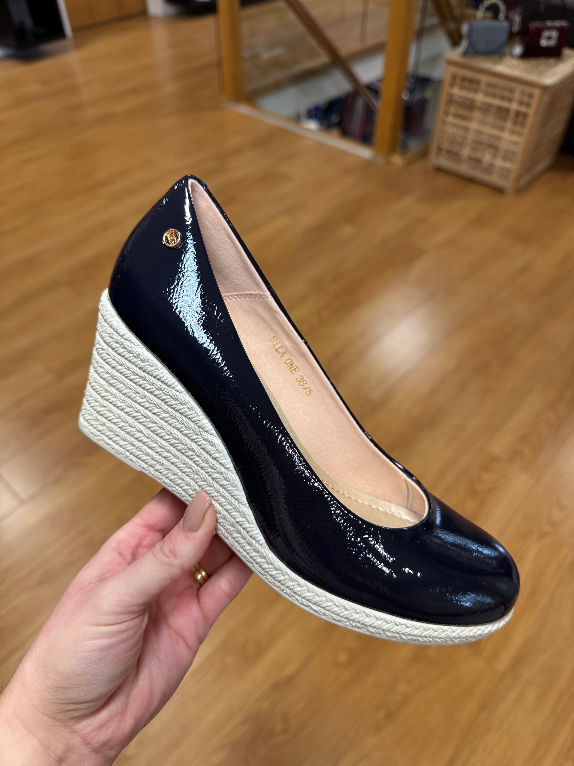 Zanni & Co Lightweight Wedge Shoe with Patent Finish & Espadrille Effect